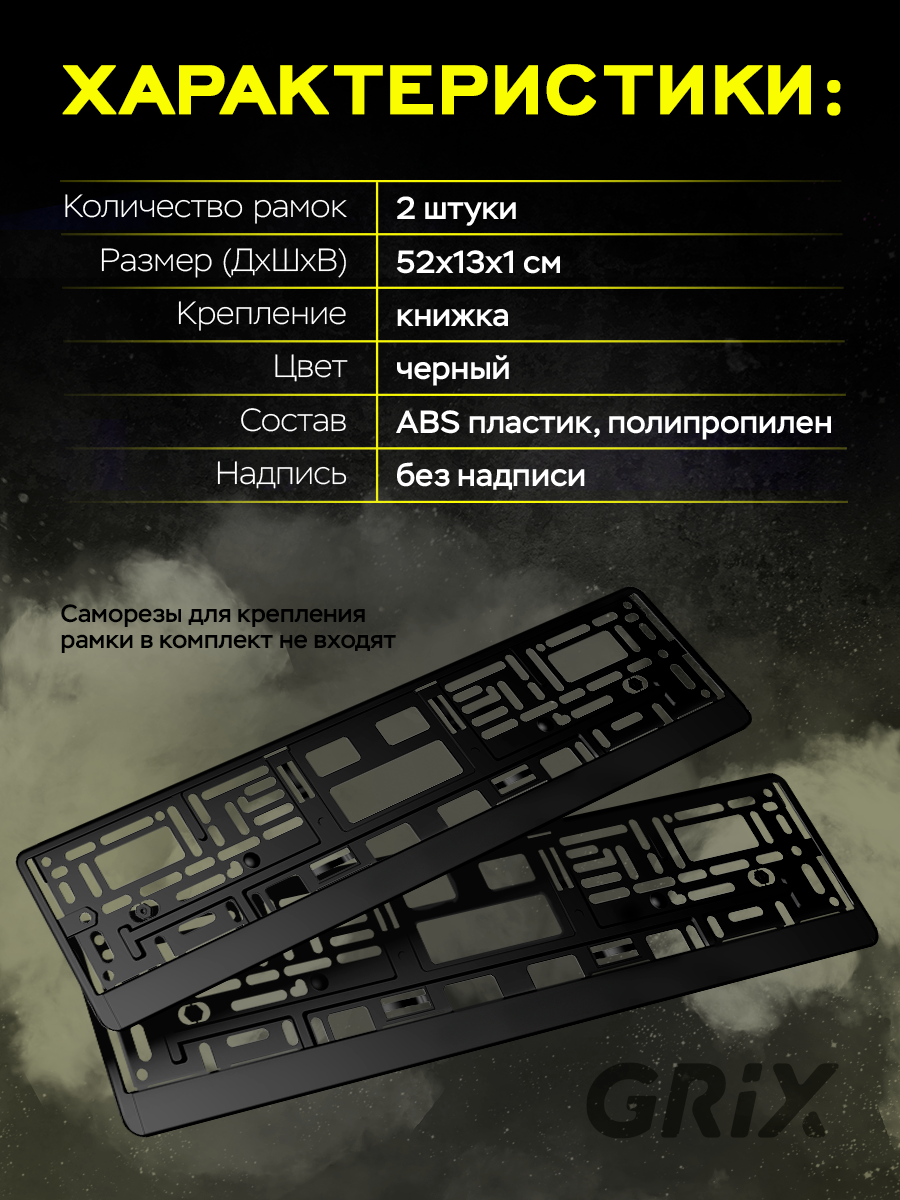 Grix Рамки автомобильные для госномеров БЕЗ надписи черные Набор - 2 шт. информация: