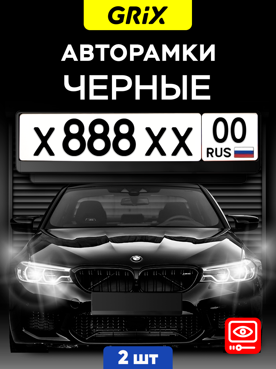 10 цен на Grix Рамки автомобильные для госномеров БЕЗ надписи черные Набор - 2 шт.