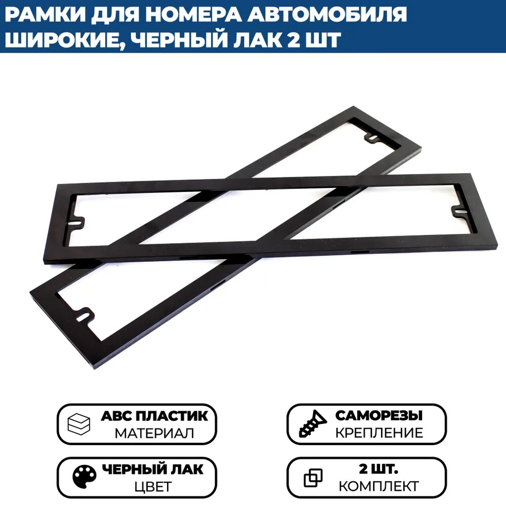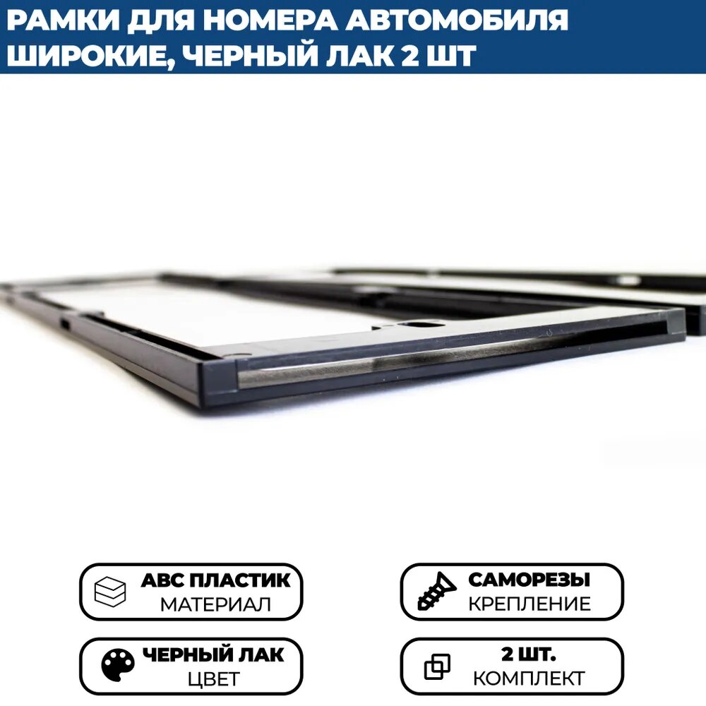 Широкая номерная рамка автомобиля, черная глянцевая, комплект 2 шт. информация: