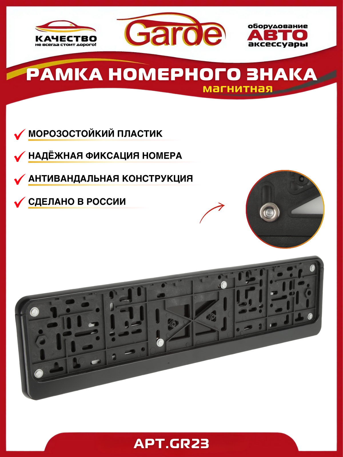 Отзывы на Рамка номерного знака Garde, антивандальная, магнитная, чёрная, 54х13.5 см