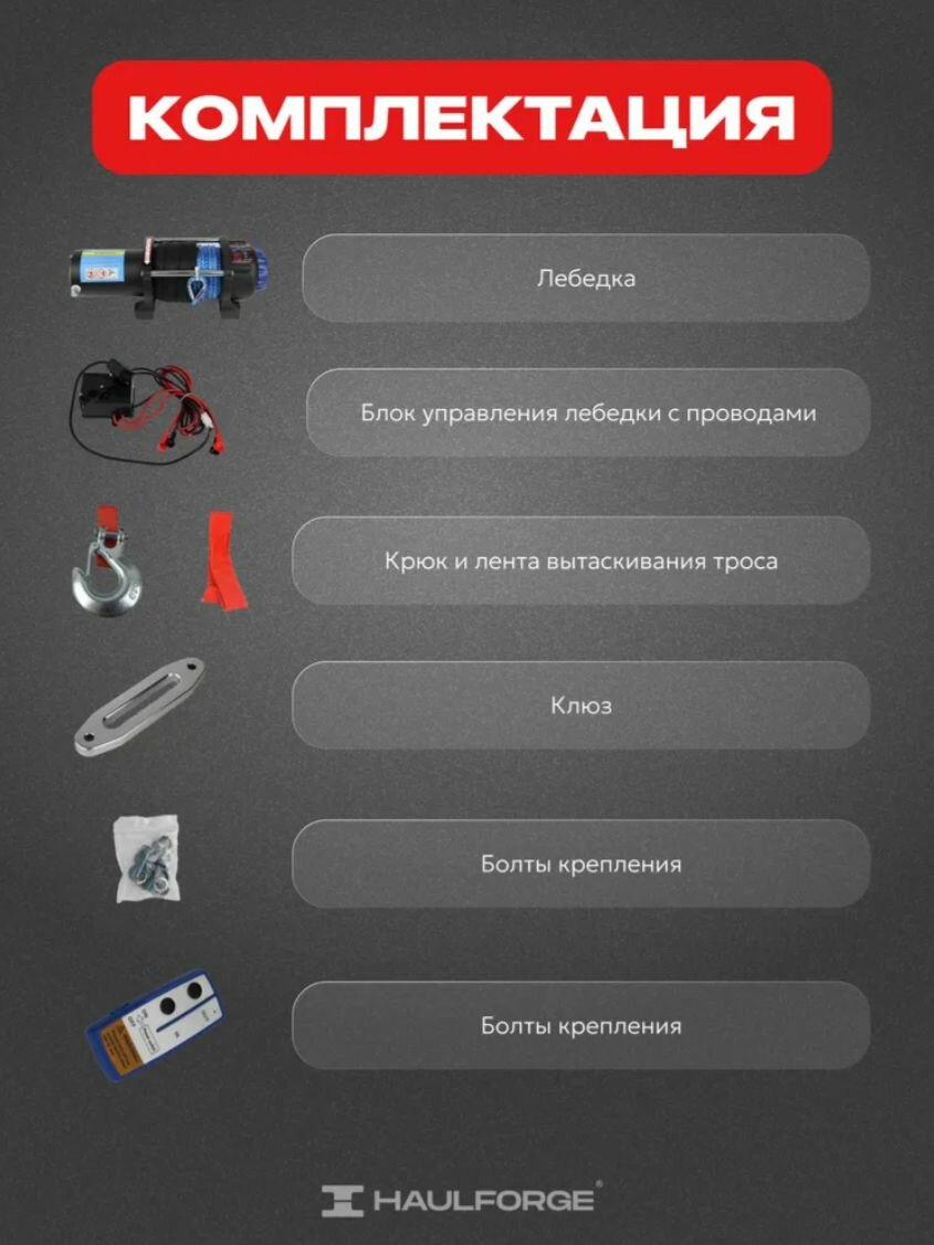 Лебедка электрическая переносная 12В Electric Winch 5000 LBS / Электролебедка с кевларовым тросом c грузоподъемность 2268 кг информация: