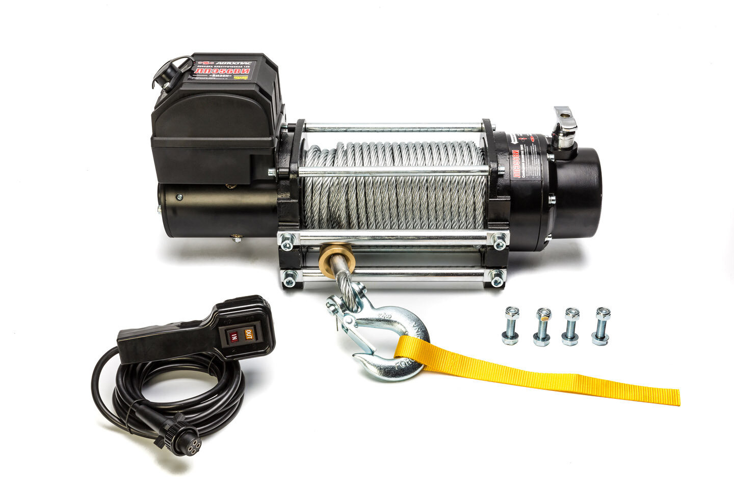 Лебедка электрическая тундра 12/24V 6000 lb (2.7 т) 3 л.с. до 8.5 м/мин 7.2 мм х 24 м