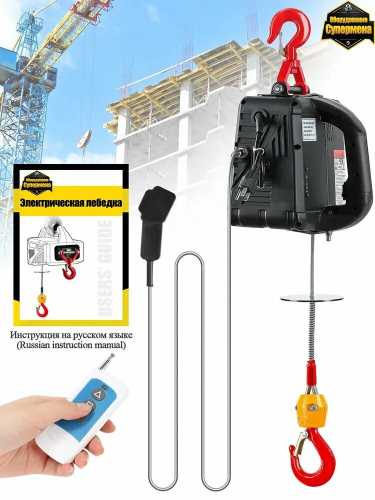 Таль, электрическая лебедка,500 кг, 8 м, портативный электрический тельфер, беспроводное дистанционное управление,3 в 1 информация: