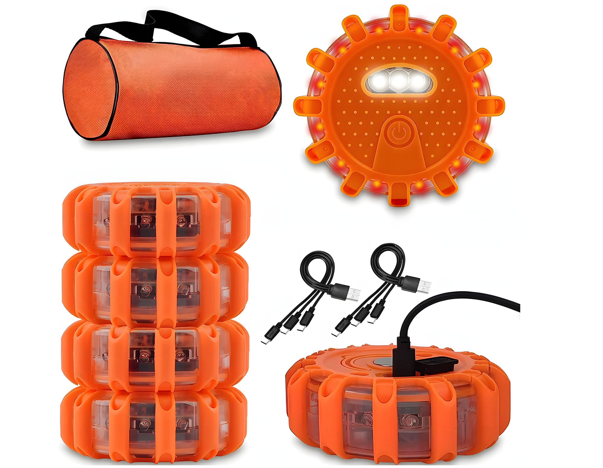 Отзывы на Светодиодные сигнальные лампы из пластика с зарядкой и сумкой, 6 штук, 10.2х10.2 см, 15 светодиодов, оранжевый