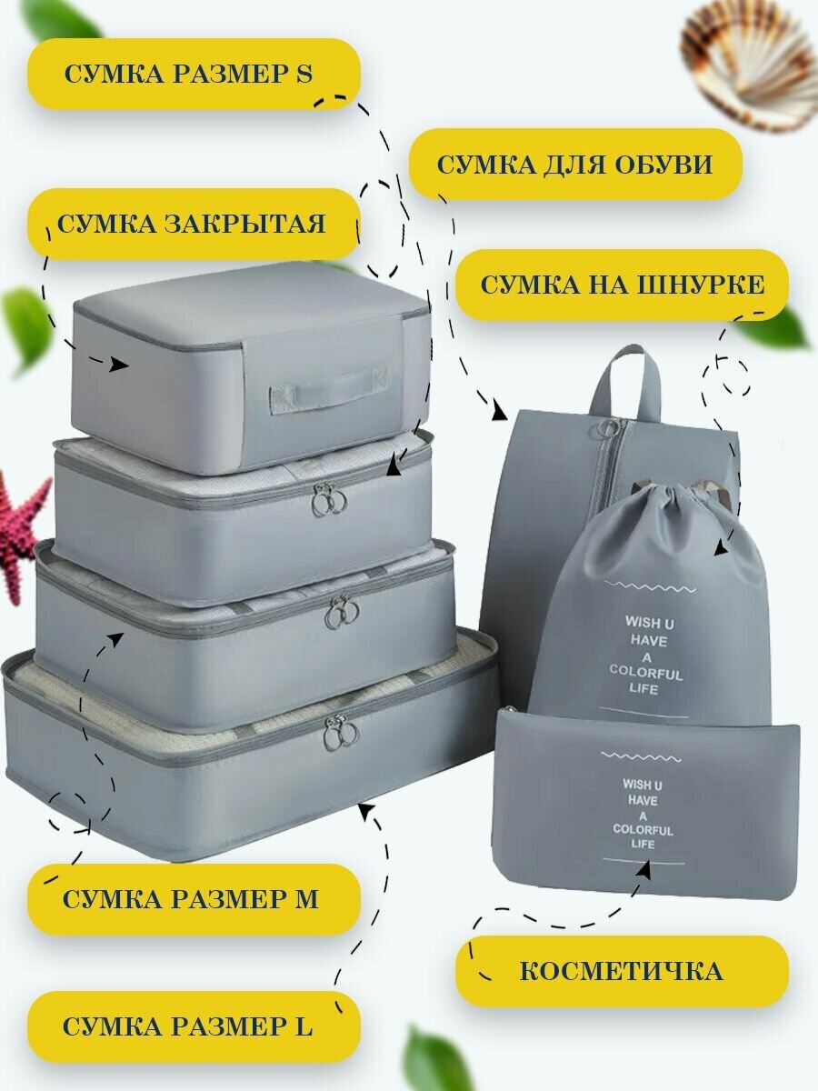 10 цен на Набор органайзеров дорожных 7 штук, серый