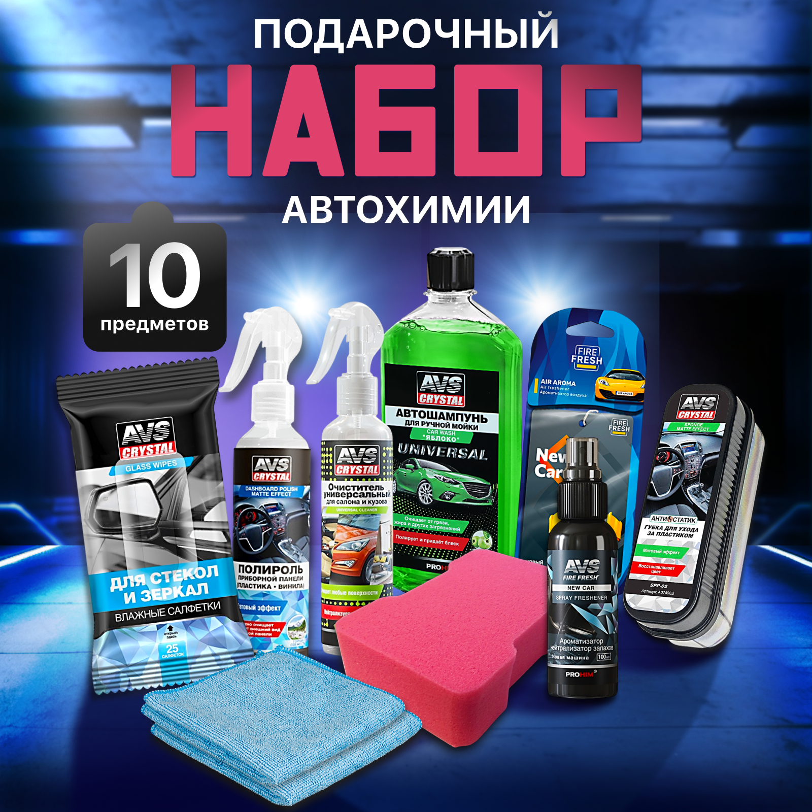 Подарочный набор AVS автохимия, 10 штук, для автомобилистов информация: