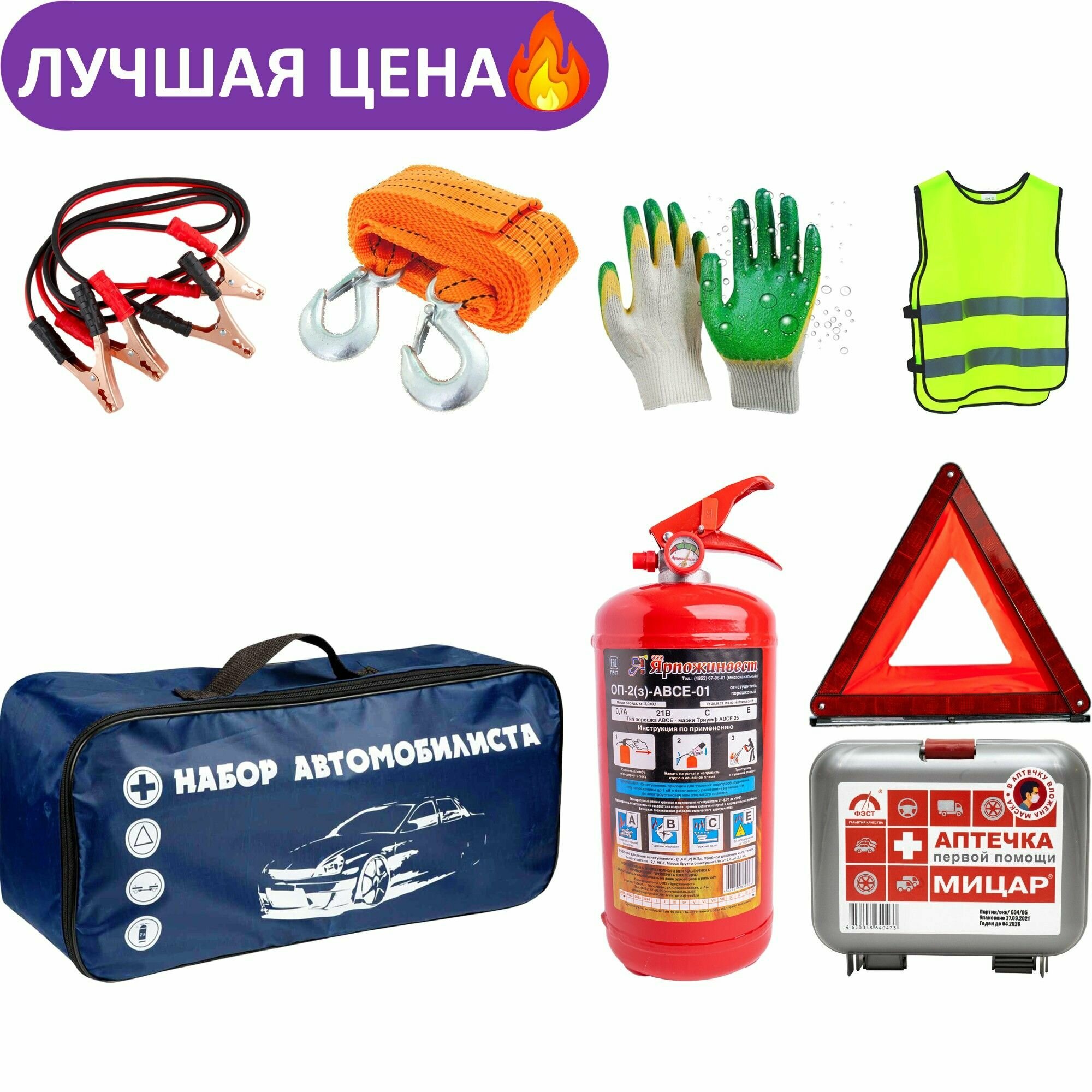 10 цен на Набор автомобилиста D-4 Аптечка, Аварийный знак, трос.