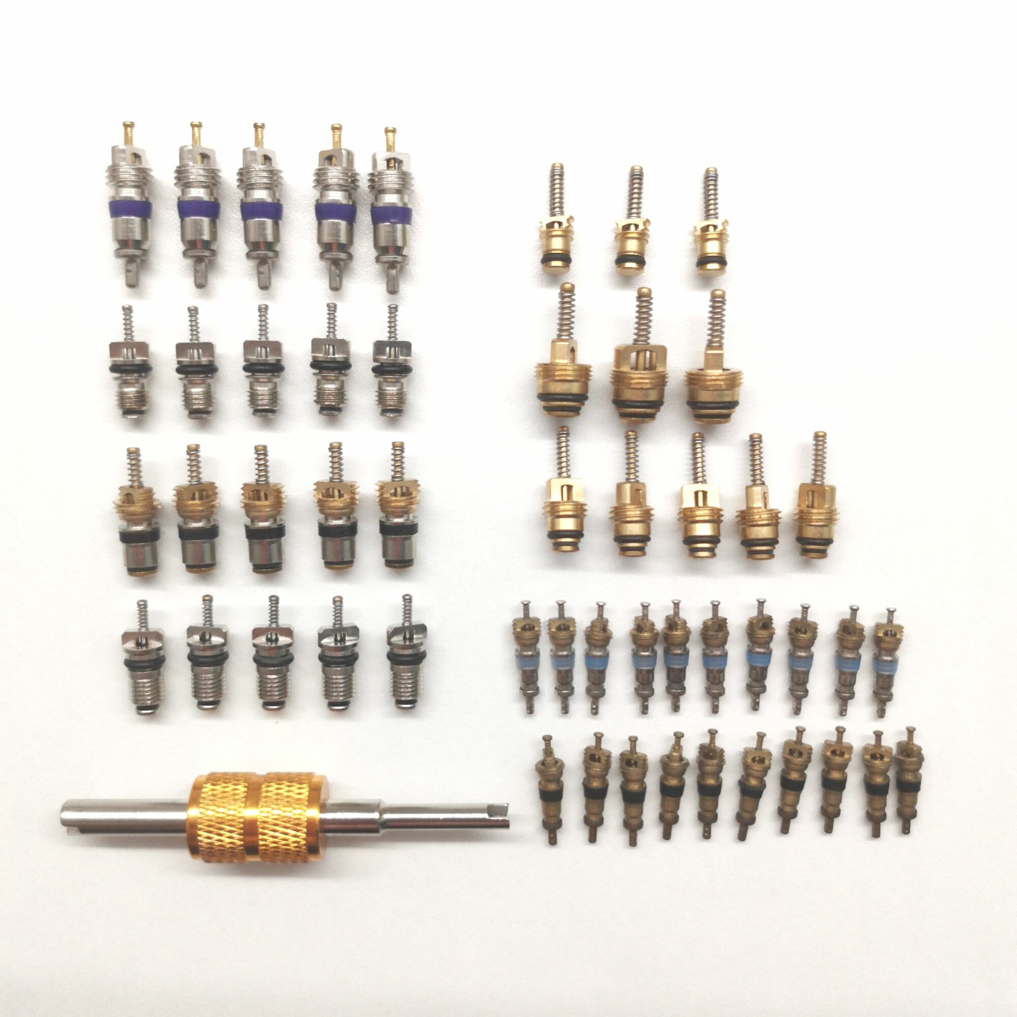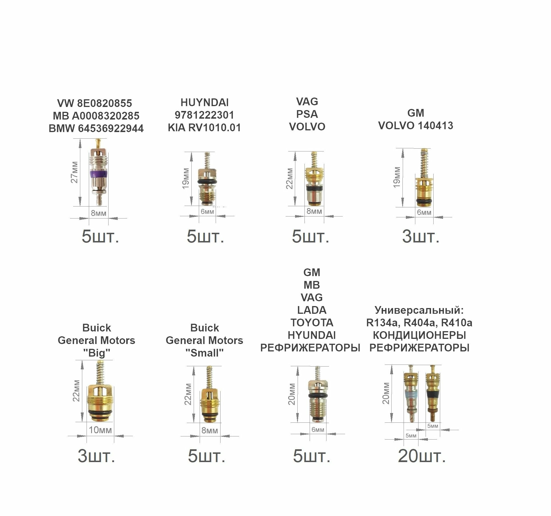 Набор ниппелей (золотников) для автокондиционеров - 8 видов, 51 шт. Для фреонов R134a, R1234yf, R404a, R410a. информация:
