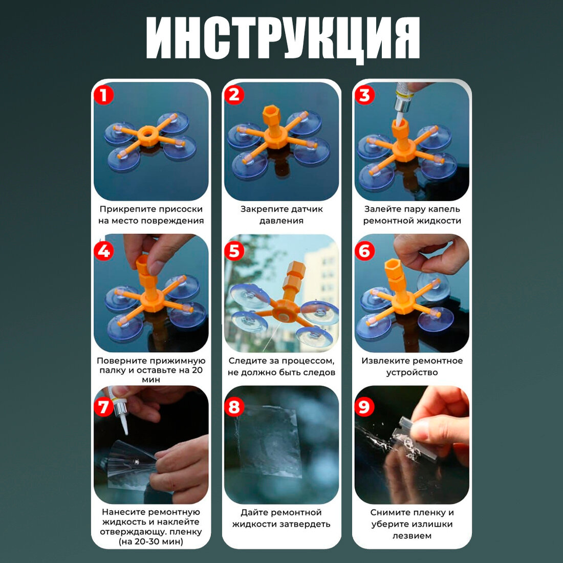 Отзывы на Набор автохимии для ремонта лобового стекла, набор автомобилиста, ультрафиолетовый фонарик