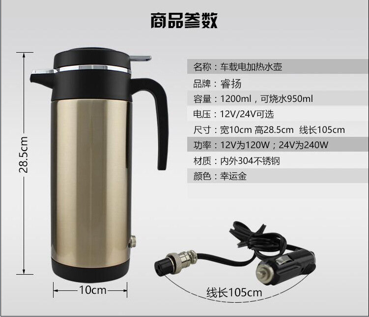 750мл 12V Автомобильный нержавеющий чайник с подогревом от прикуривателя