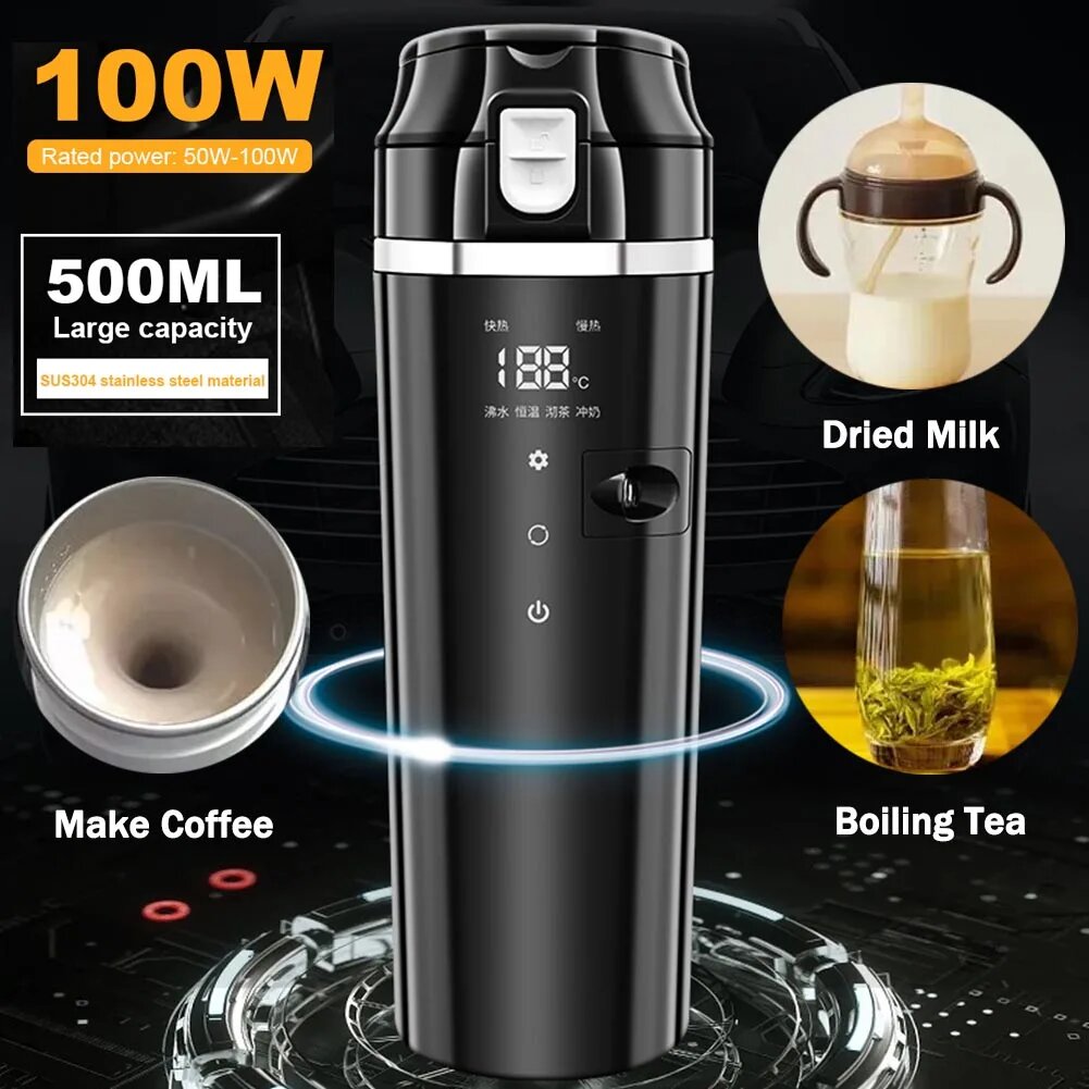 10 цен на Автомобильный чайник из нержавеющей стали с подогревом, 500 В, с контролем температуры, Черный