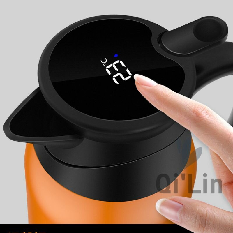 Автомобильный электрический чайник Mypads подогреваемый от прикуривателя для воды из нержавеющей стали c LED-дисплеем 1000 мл 24V серебристый
