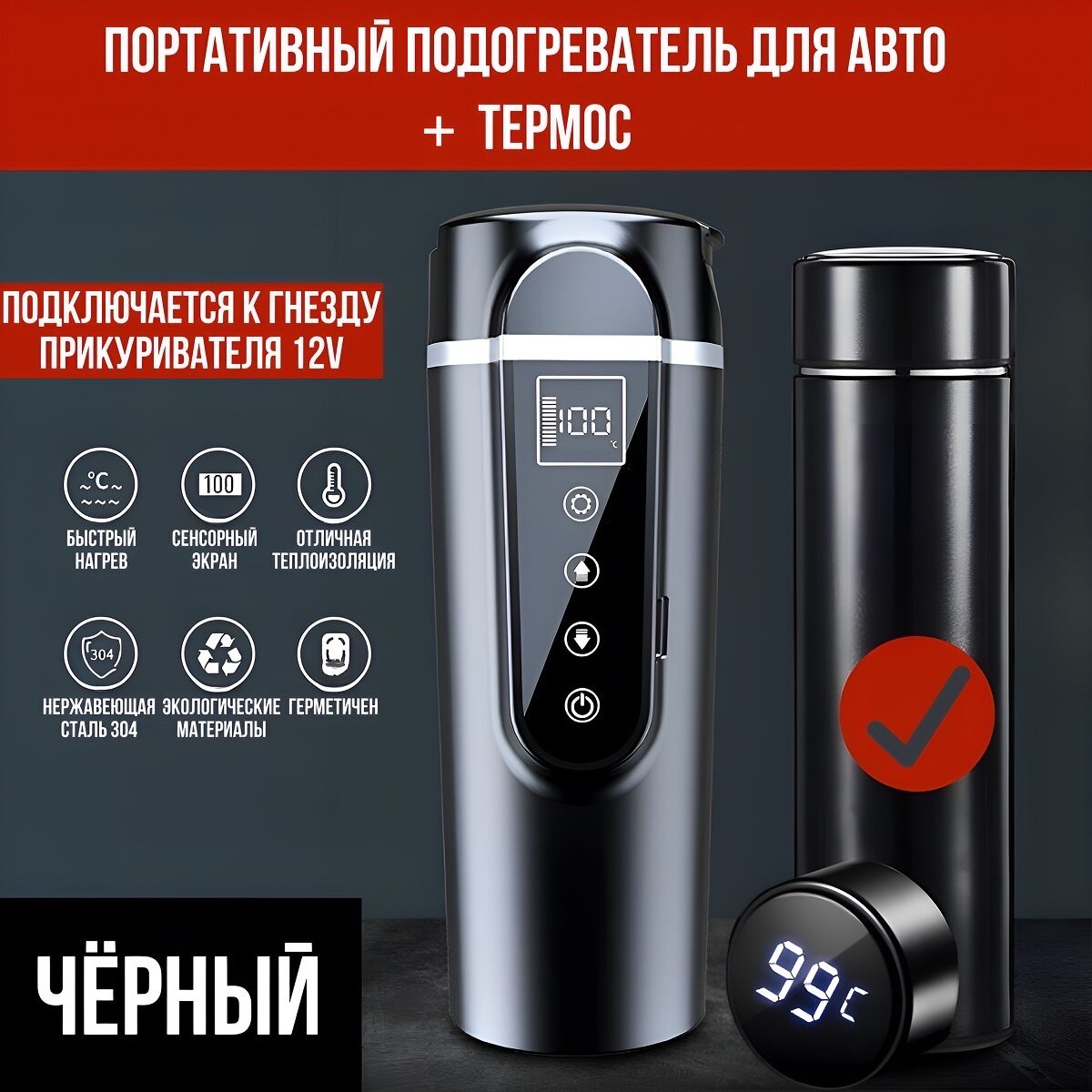 Автомобильный чайник от прикуривателя, 12B-24B, 400мл, черный