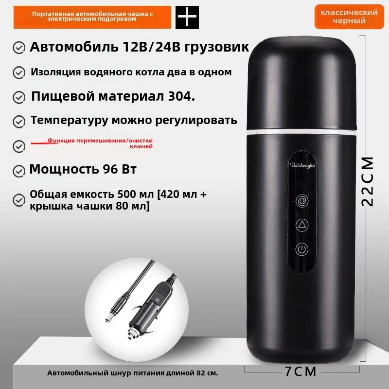 Автомобильный чайник от прикуривателя, 12B-24B, 400мл, черный