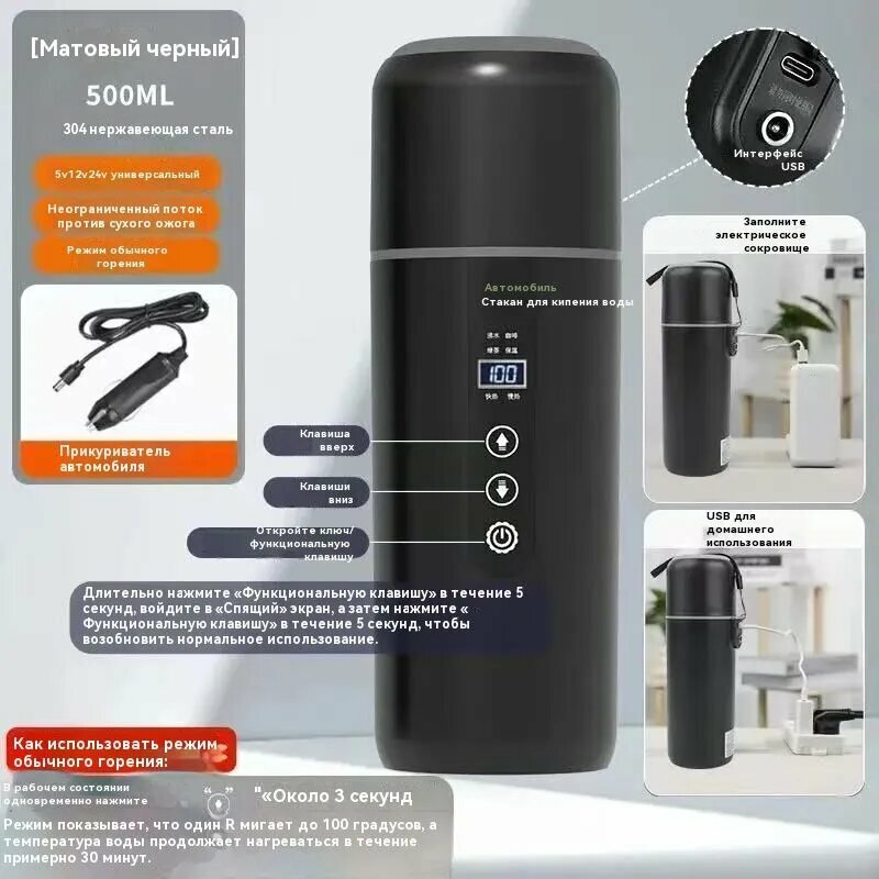 10 цен на Автомобильный чайник R202, 0,5 л, металл, чёрный, автоотключение, световая индикация