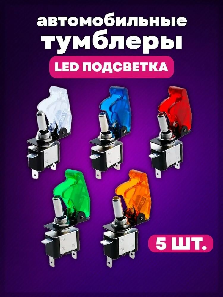 10 цен на Тумблер автомобильный с LED подсветкой 5 штук + крышки
