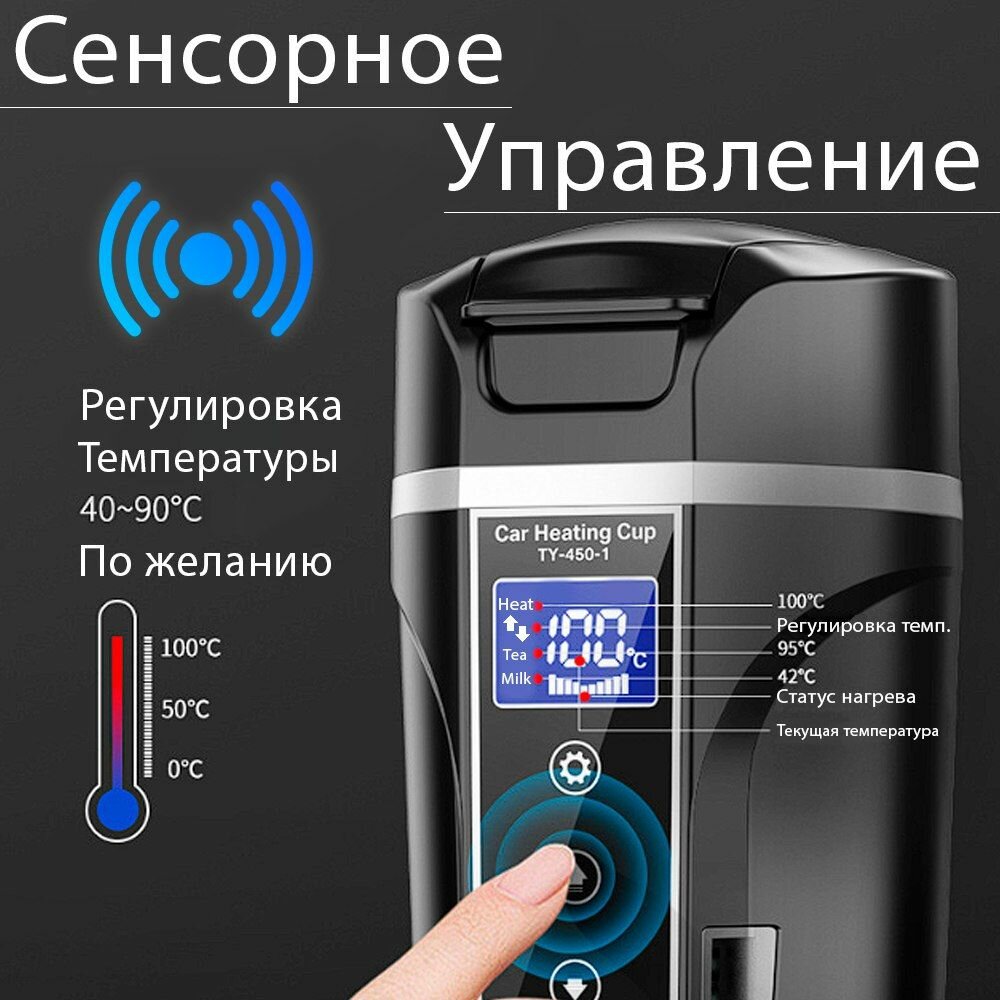Автомобильный чайник от прикуривателя, 12B-24B, 400мл, черный