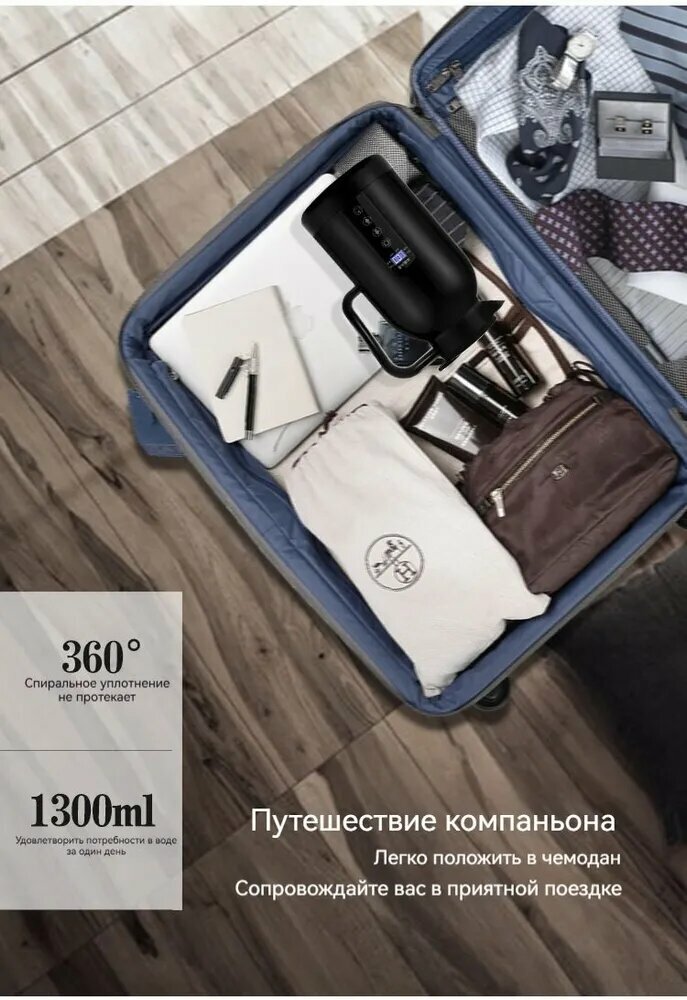 Автомобильный электрический чайник Mypads подогреваемый от прикуривателя для воды из нержавеющей стали c LED-дисплеем 1000 мл 24V серебристый