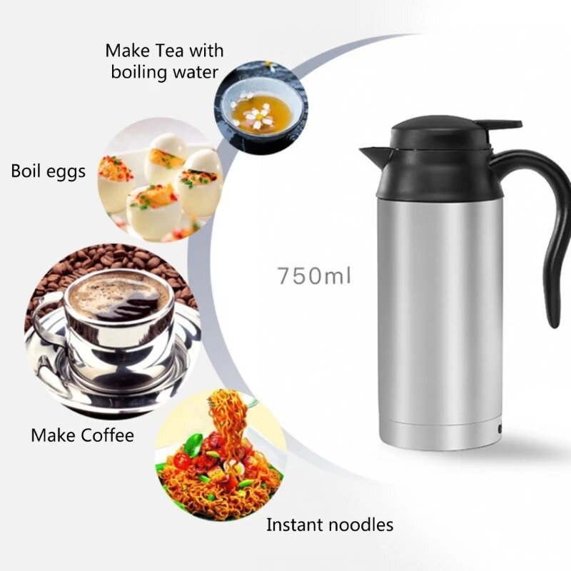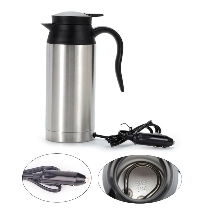 750мл 12V Автомобильный нержавеющий чайник с подогревом от прикуривателя