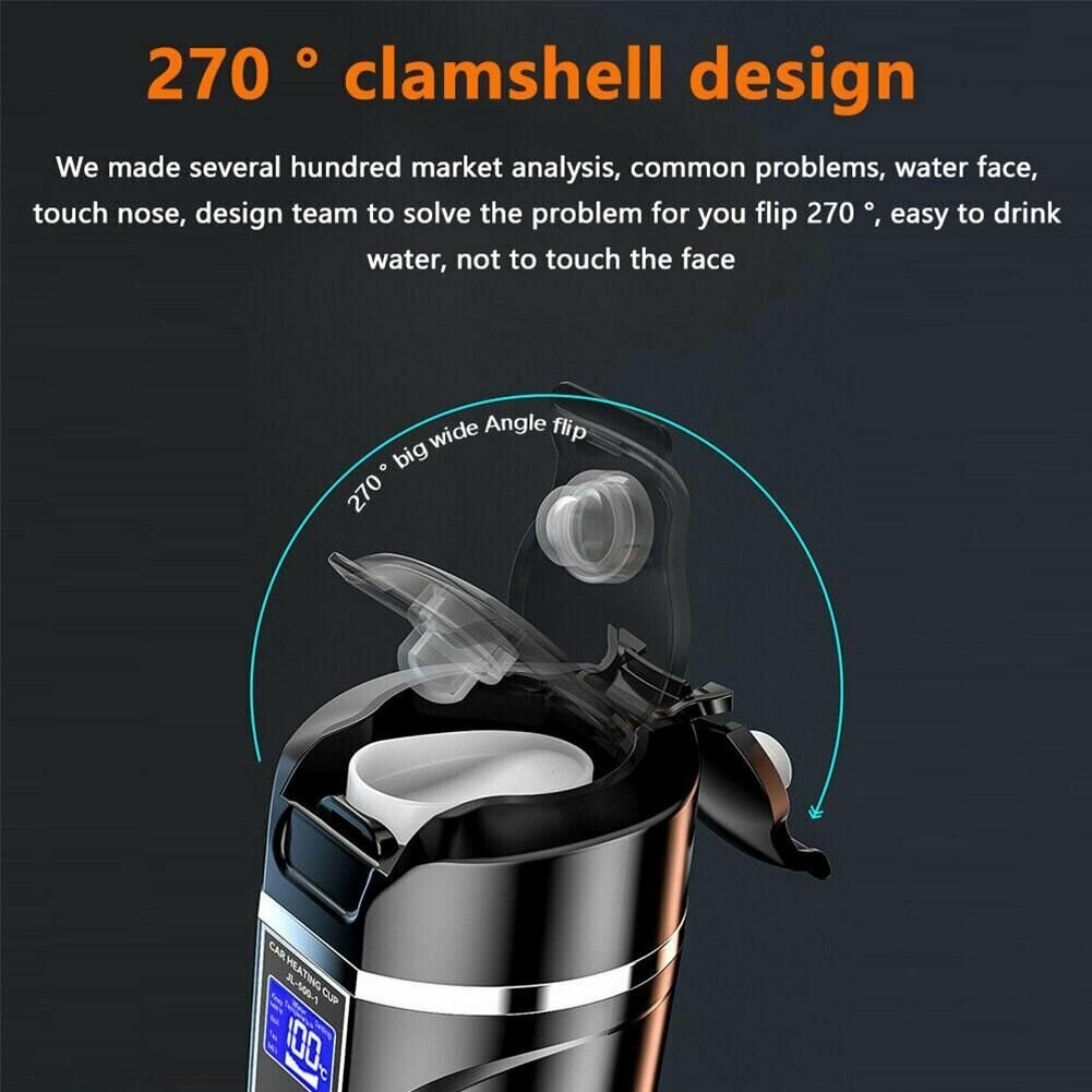 Автомобильный электрический чайник Mypads подогреваемый от прикуривателя для воды из нержавеющей стали c LED-дисплеем 1000 мл 24V серебристый