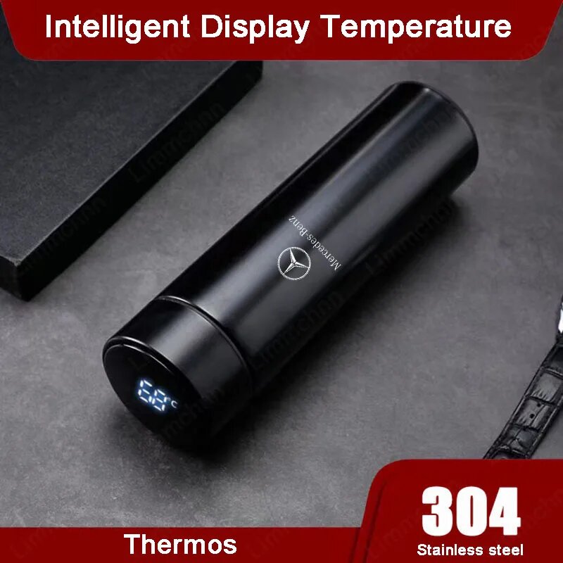 10 цен на Умная бутылка для воды 500 мл, термос из нержавеющей стали, кофейная чашка, кружка для молока для Mercedes benz W203 W204 W205 W209 W210 W211 W212, For Benz Black