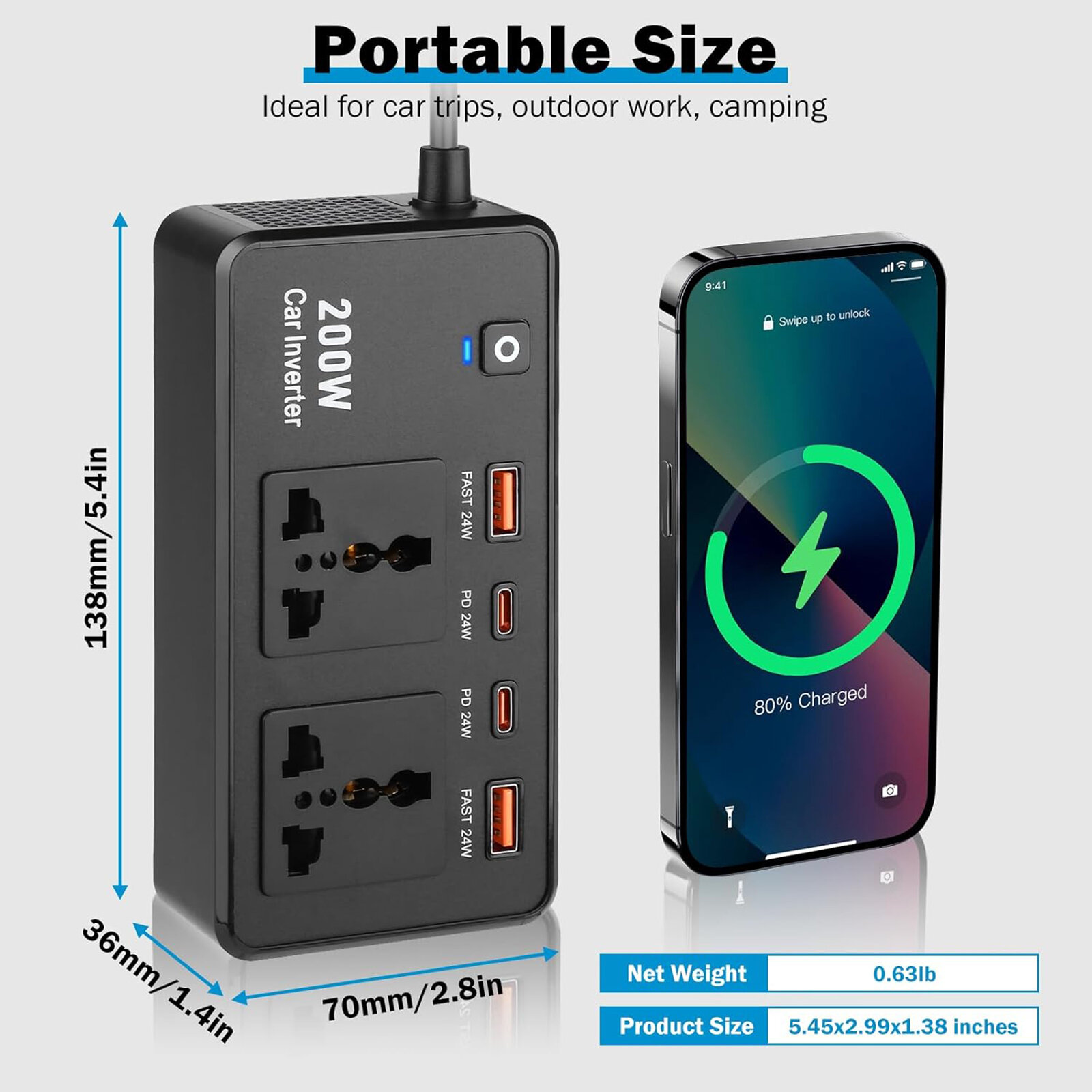 Эффективный автомобильный конвертер автомобилей на 200 Вт для дома как электроэнергия удобная зарядка информация: