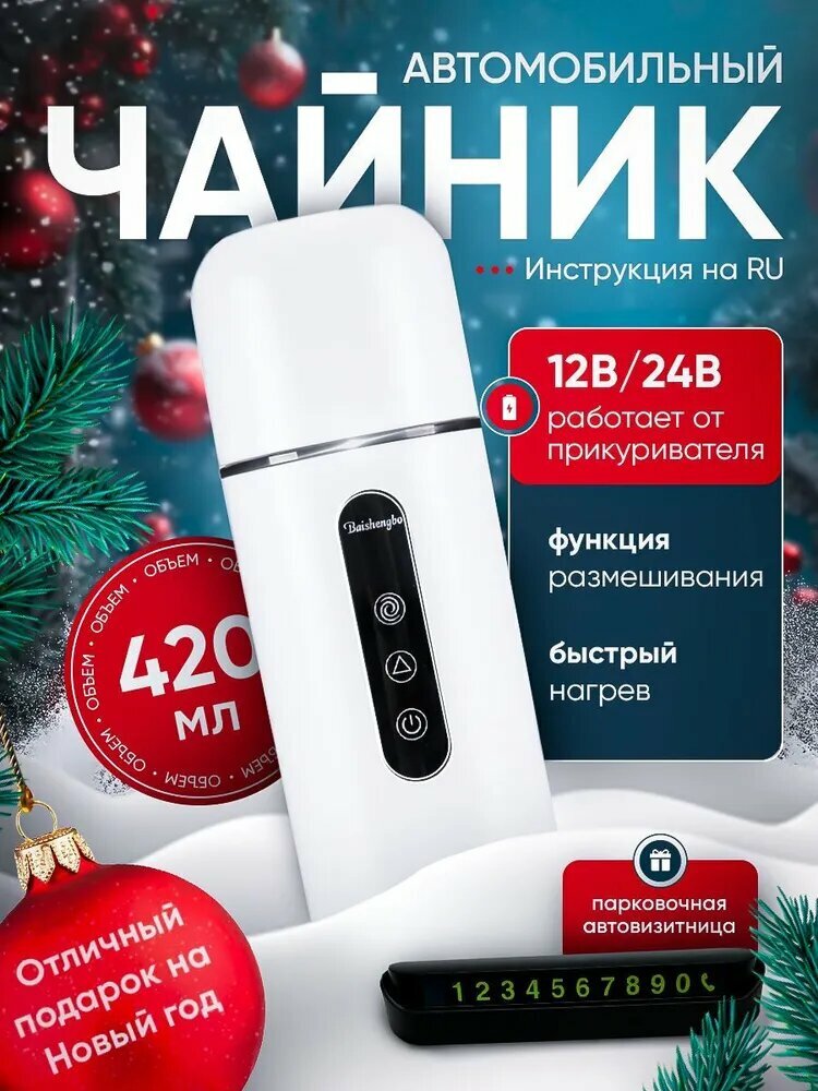 Отзывы на Автомобильный нагревательный чайник, белый, с функцией перемешивания, 12/24 В, ЖК-дисплей