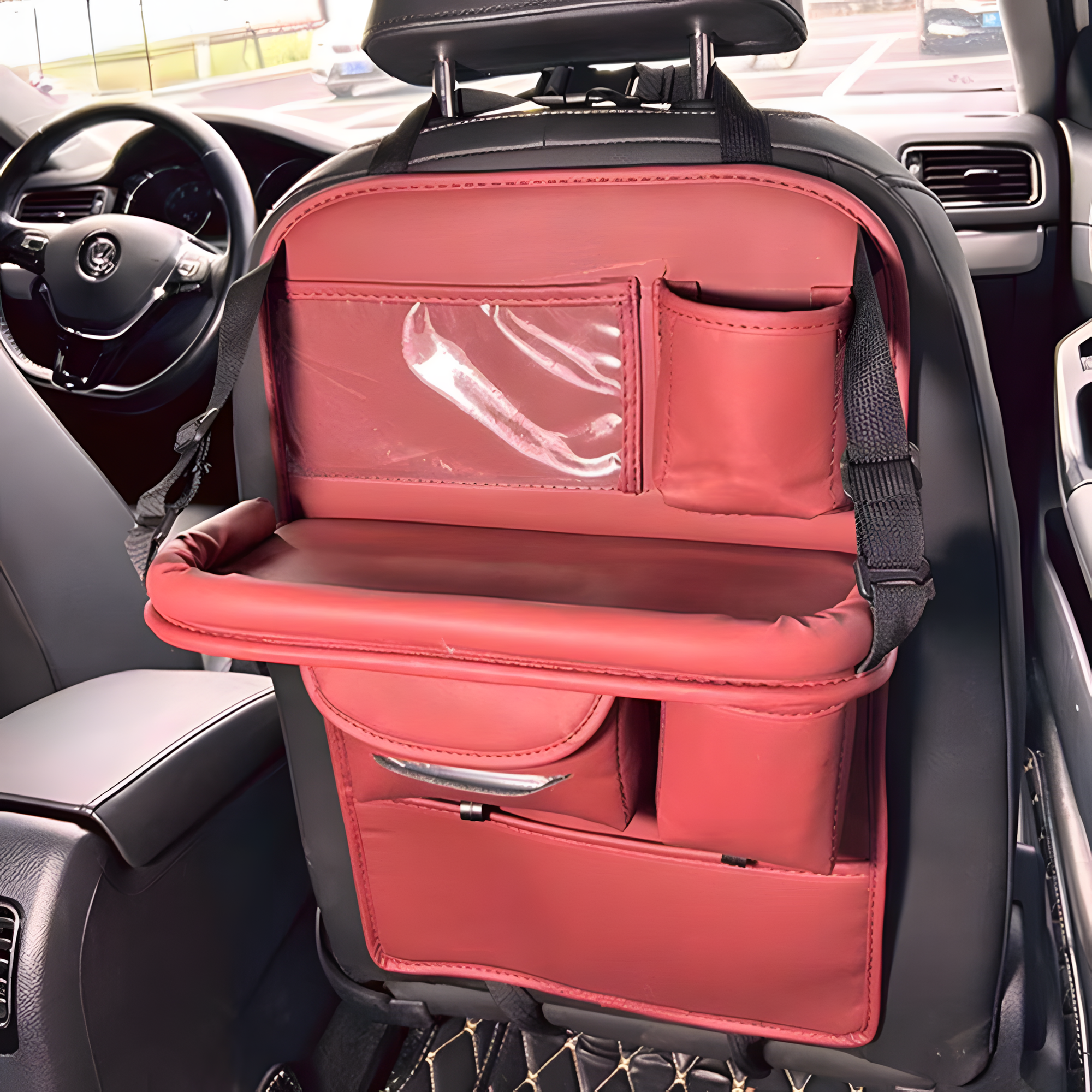 Отзывы на Органайзер Besco на спинку автокресла, подвесной, с откидным столиком, 65x45 см, красный