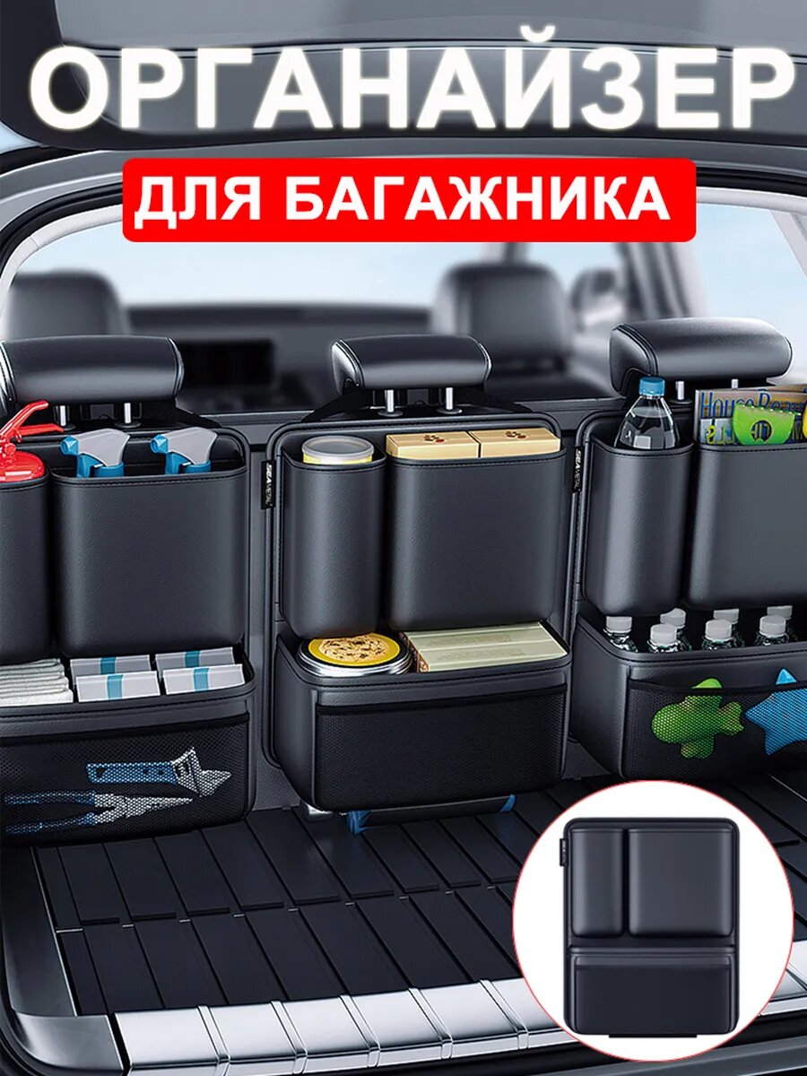 10 цен на SEAMETAL Органайзер универсальный в багажник автомобиля 1 шт кожа 38х32см черная