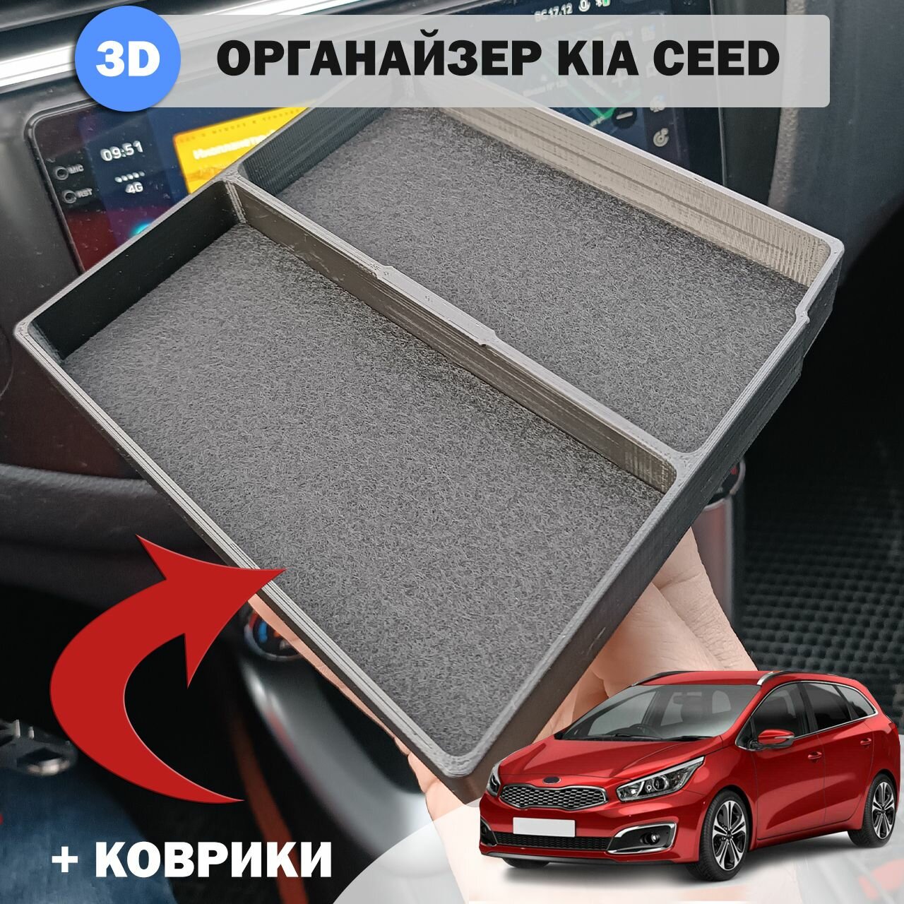Отзывы на Органайзер в подлокотник Kia Ceed JD (2 секции) + коврики из фетра