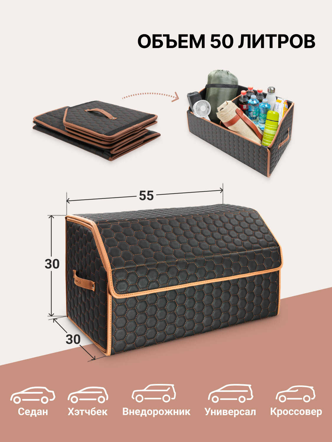 Органайзер в багажник Owlee, 55х30х30 см, премиум экокожа, 1 шт информация: