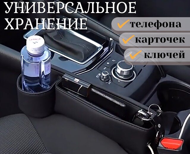 Отзывы на Сумка- дорожный органайзер /вставка-заглушка между между сидением и консолью. Черная экокожа
