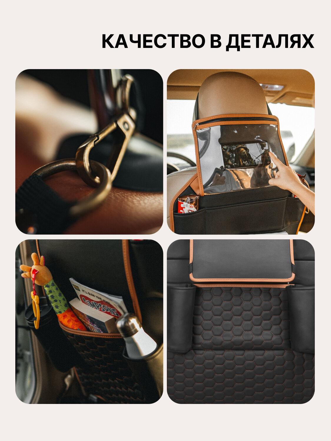 Отзывы на Комплект органайзеров на спинку сиденья Owlee, 8 карманов, премиум экокожа, коричневый, 2 шт