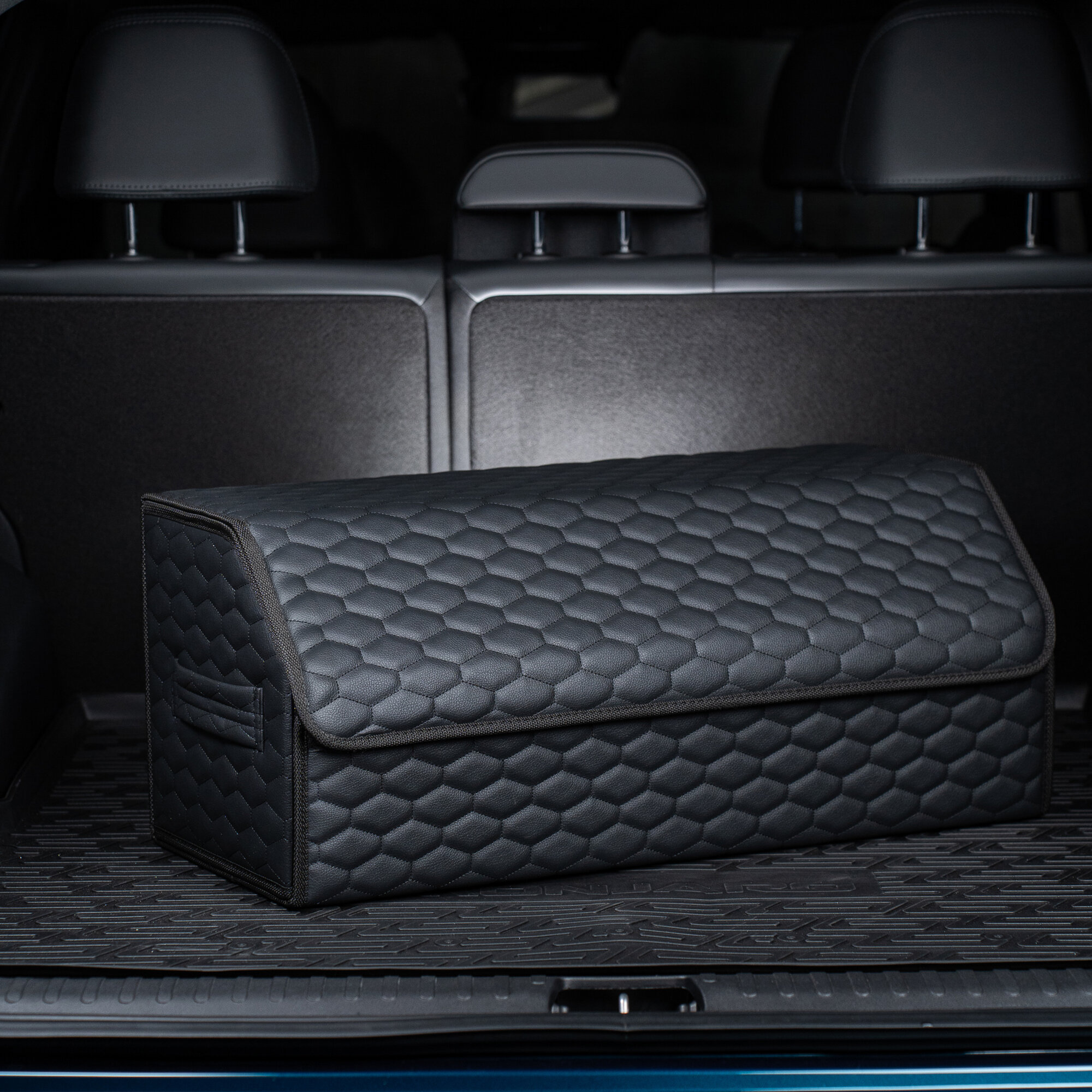 Саквояж в багажник автомобильный эко кожа черная синий ромб, объем 45 л