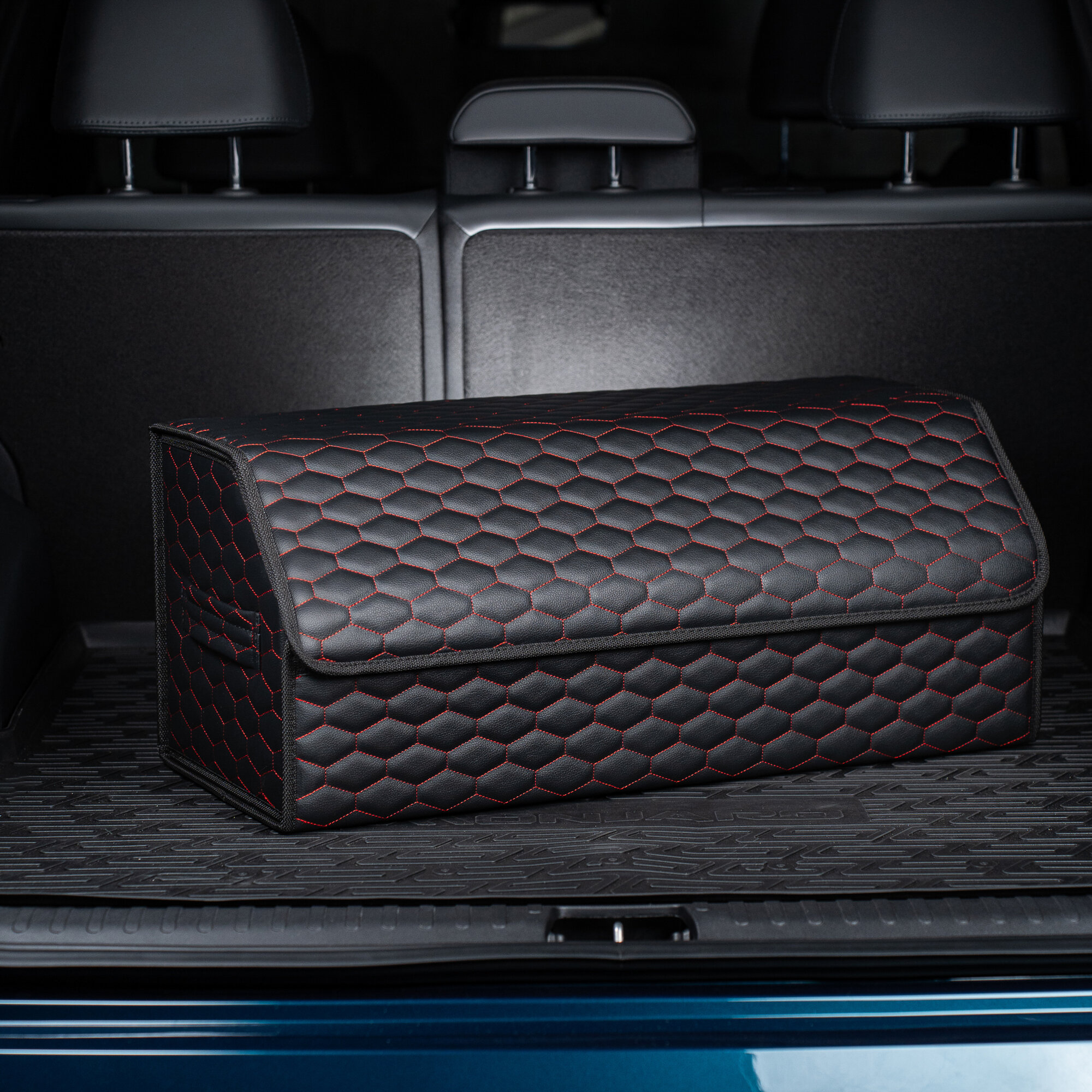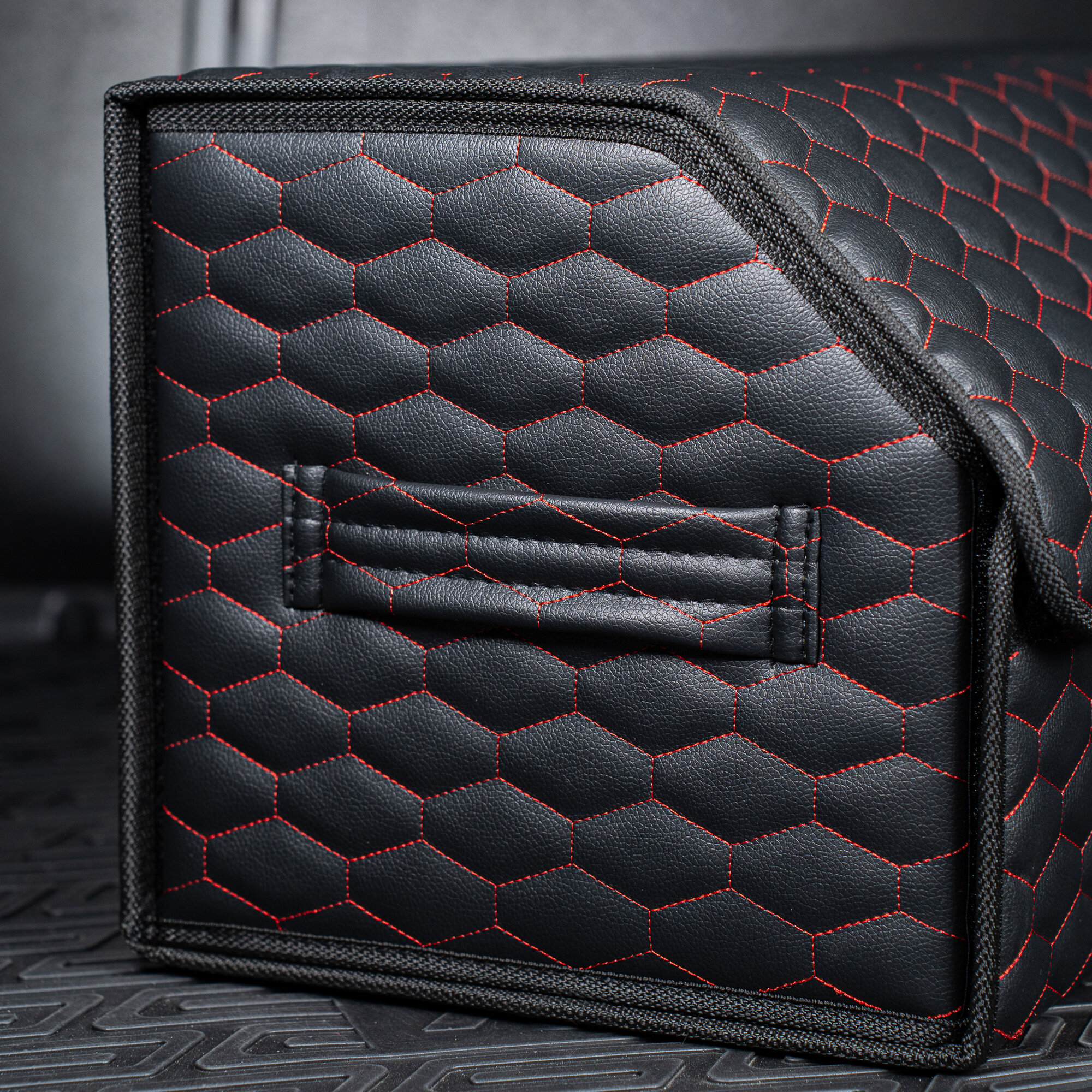 Сумка-органайзер в багажник Хонда хр-в (1998 - 2001) внедорожник 3 двери / Honda HR-V, экокожа , Черный с красной строчкой, Размер М:30x30x55см