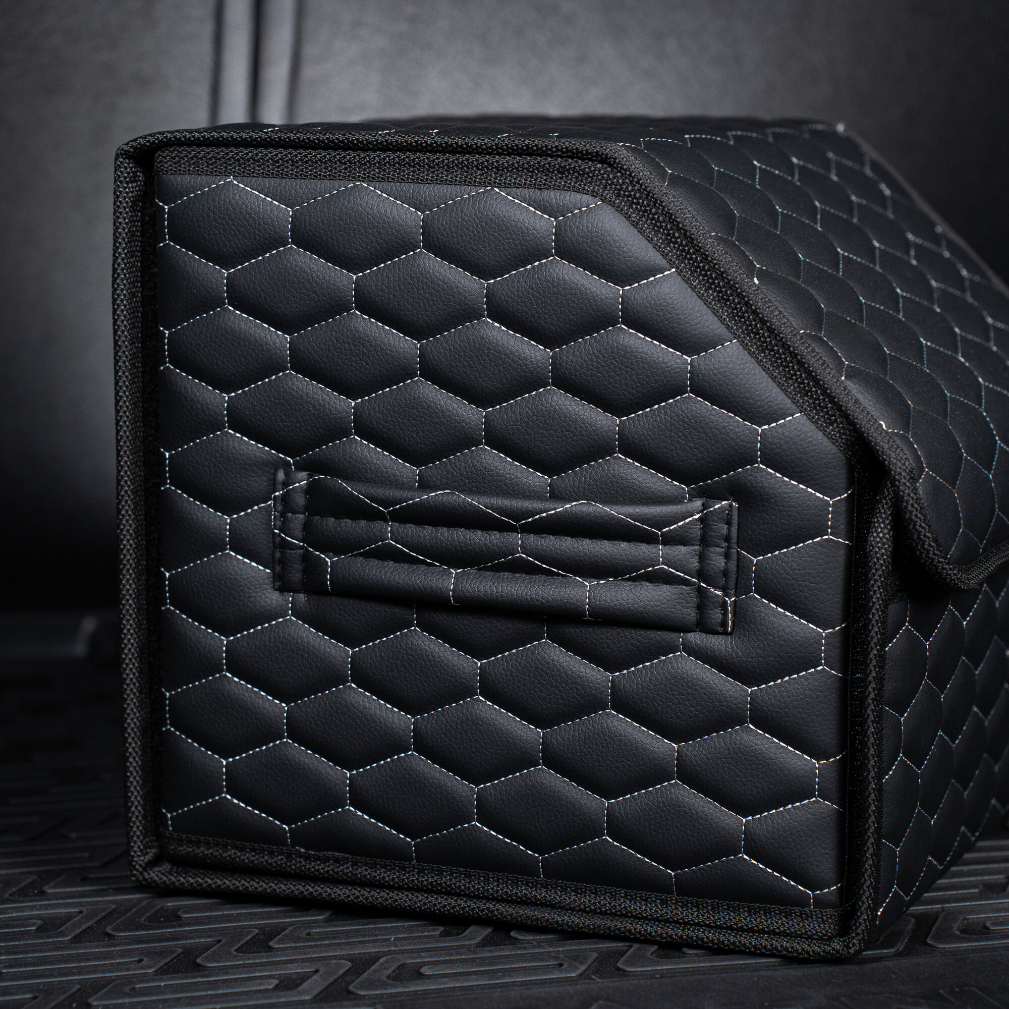 Саквояж в багажник автомобильный эко кожа черная синий ромб, объем 45 л