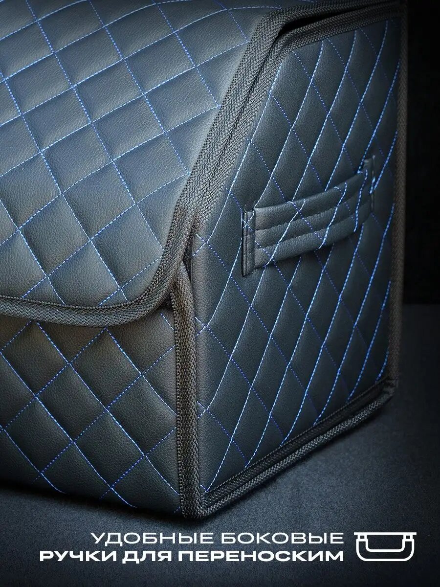 Отзывы на Органайзер ЧехлоFF, для багажника автомобиля, ЭКО кожа, влагостойкий, с ручками, черный с синей строчкой, 30х30
