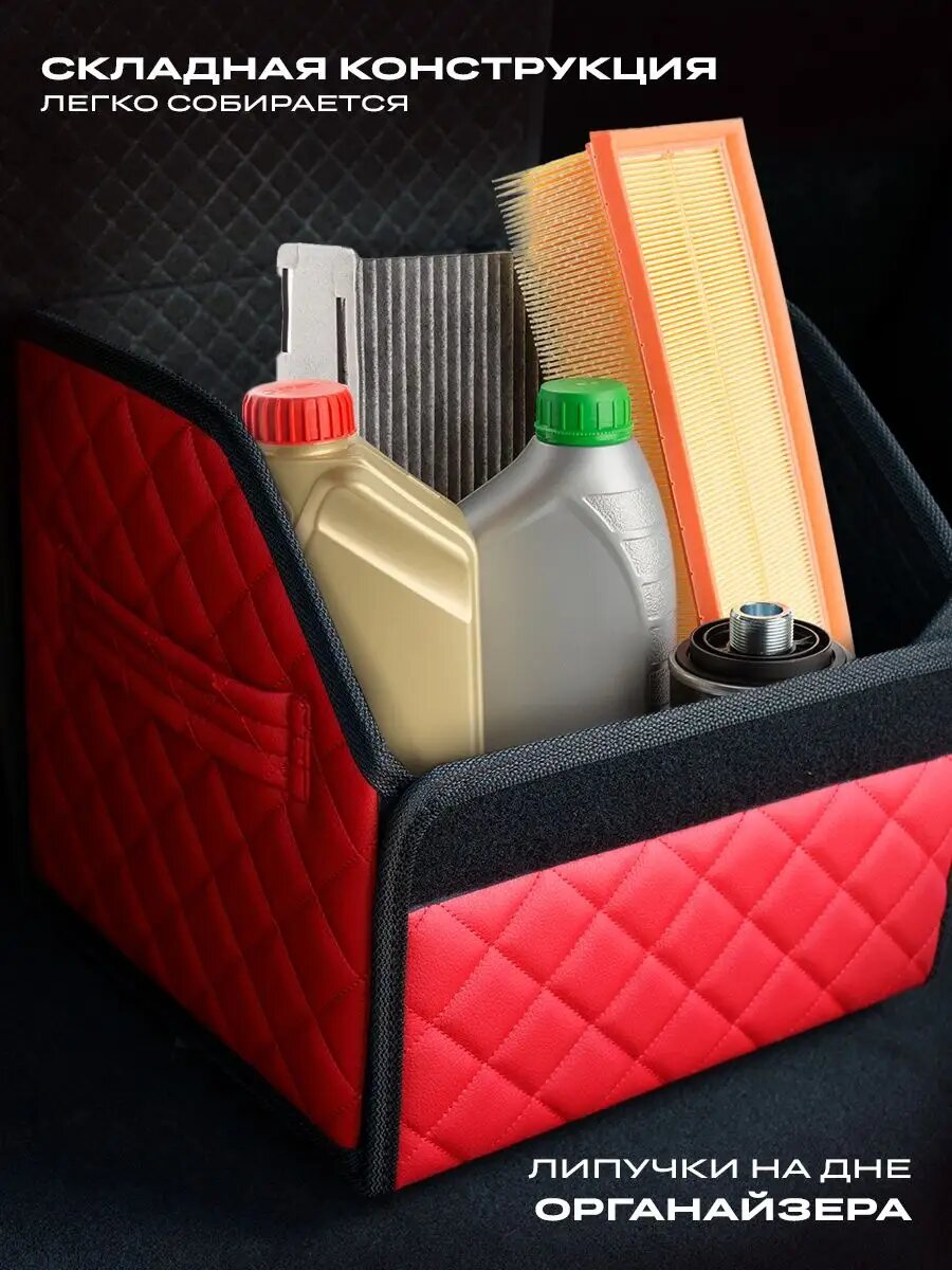 10 цен на Органайзер ЧехлоFF, для багажника автомобиля, ЭКО кожа, влагостойкий, с ручками, крансый с черным кантом, 30х30