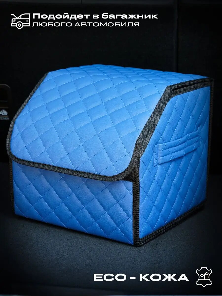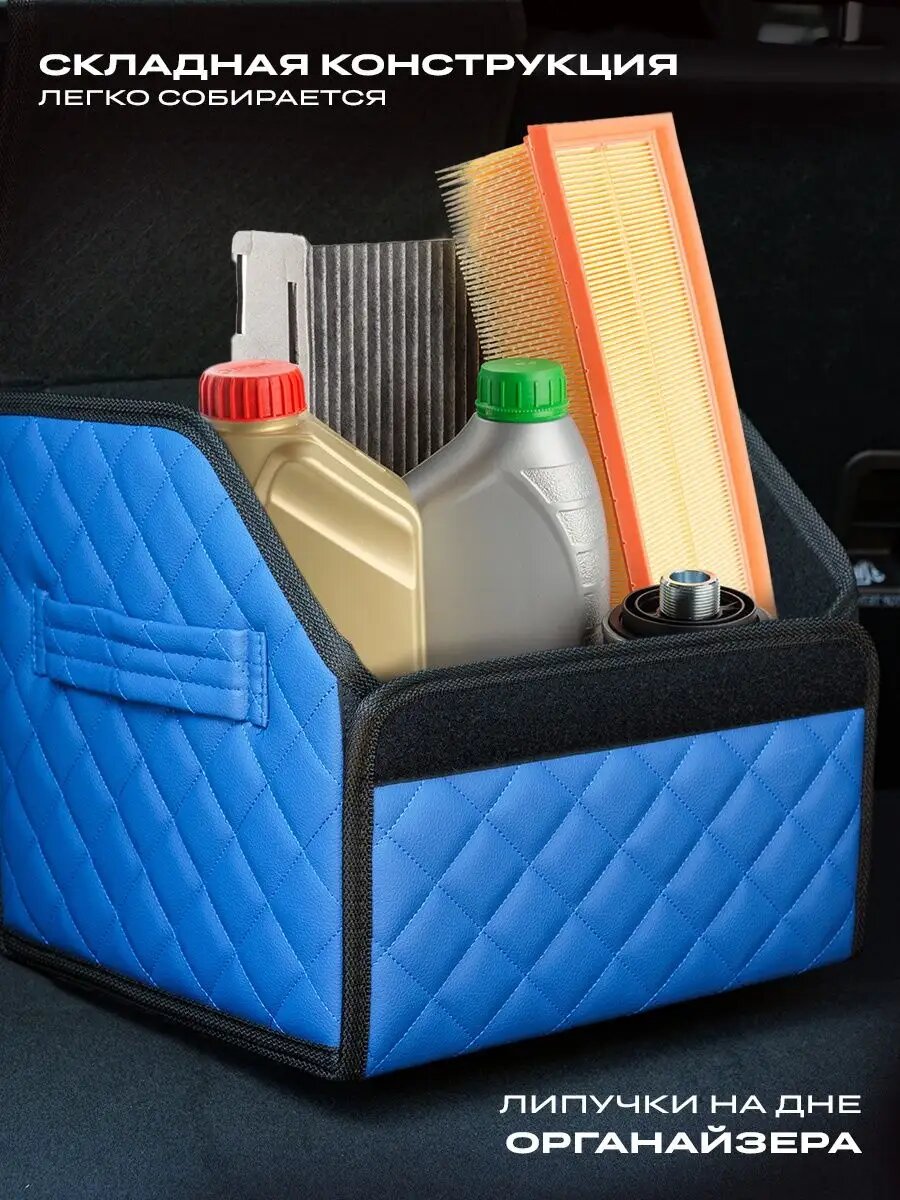 Отзывы на Органайзер ЧехлоFF, для багажника автомобиля, ЭКО кожа, влагостойкий, с ручками, синий с черным кантом, 30х30