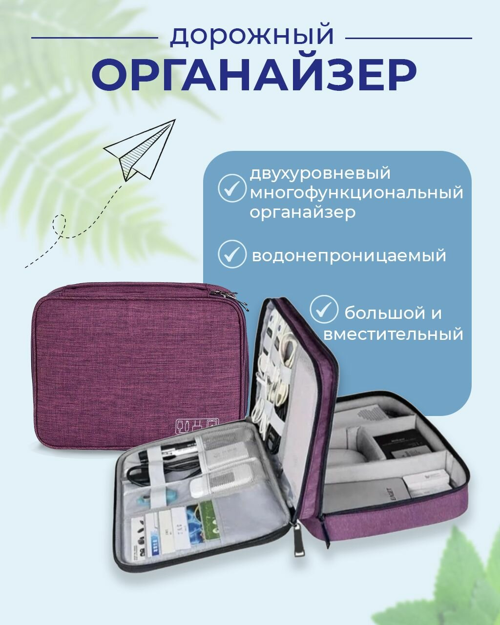 10 цен на Многофункциональный дорожный органайзер, фиолетовый