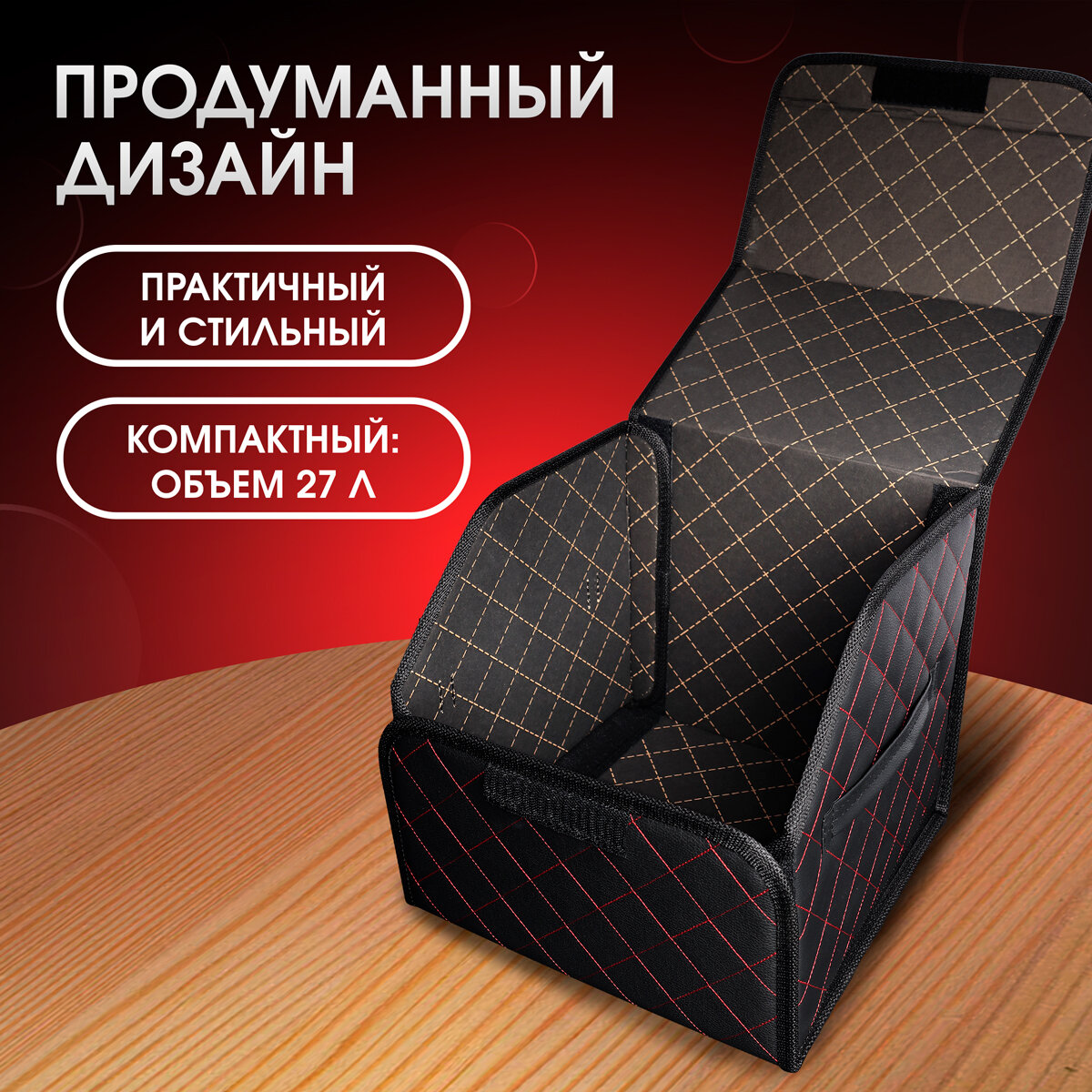 Органайзер в багажник автомобиля. Бокс для хранения в авто 50*35*30. Чёрный/красная строчка 1 600 ₽