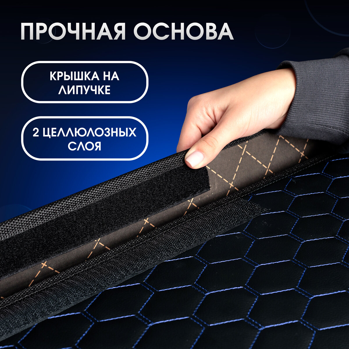 Органайзер в багажник автомобиля. Бокс для хранения в авто 70*35*30. Черный/синяя строчка 1 900 ₽