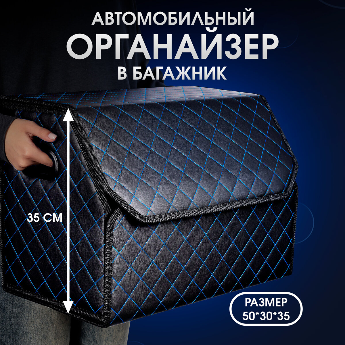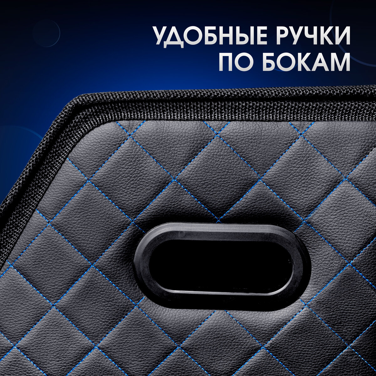 Органайзер в багажник автомобиля. Бокс для хранения в авто 50*35*30. Чёрный/синяя строчка информация: