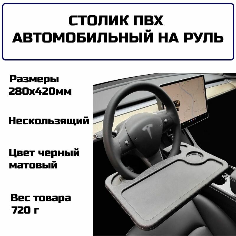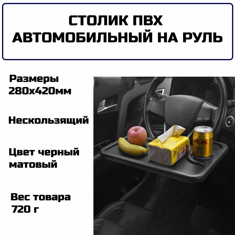 Столик для водителя на руль, черный, ABS пластик, 1 штука, 42х38см информация:
