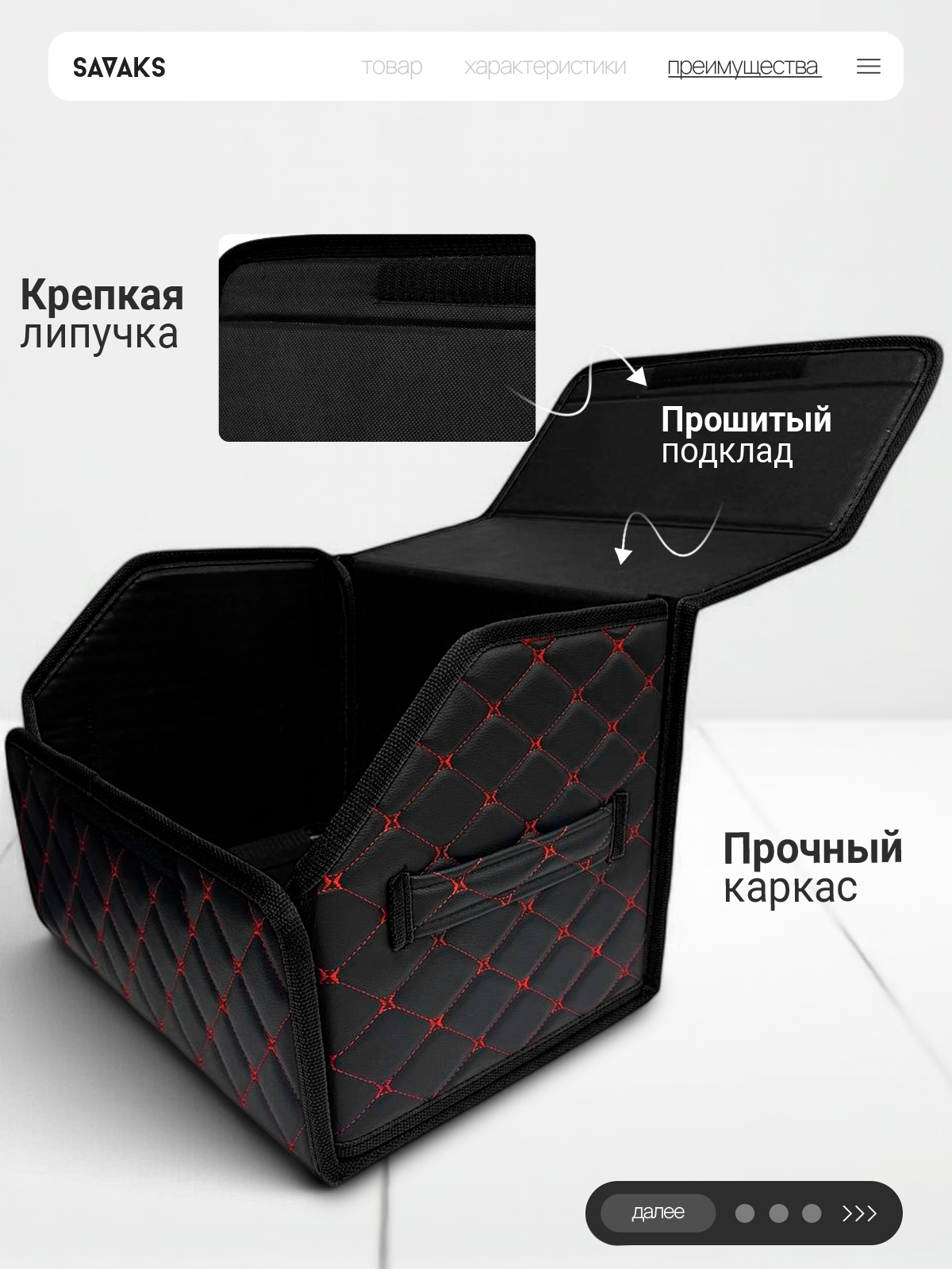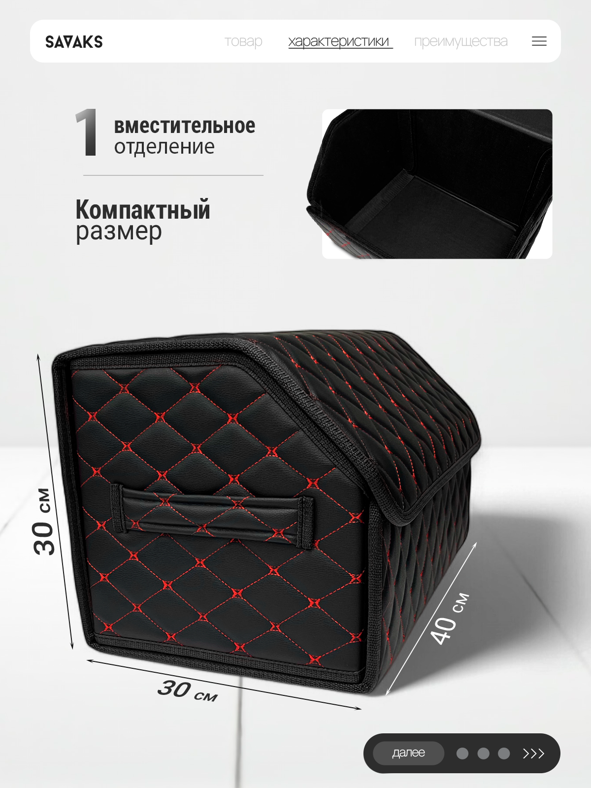 Отзывы на Органайзер в багажник автомобиля 40х30, складной, черный с красной строчкой