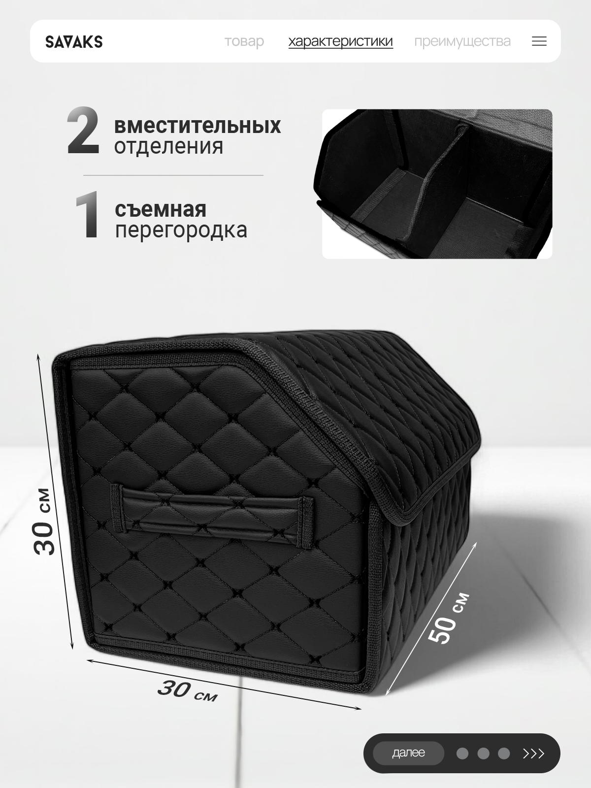 Отзывы на Органайзер в багажник автомобиля 50х30, складной, черный с черной строчкой