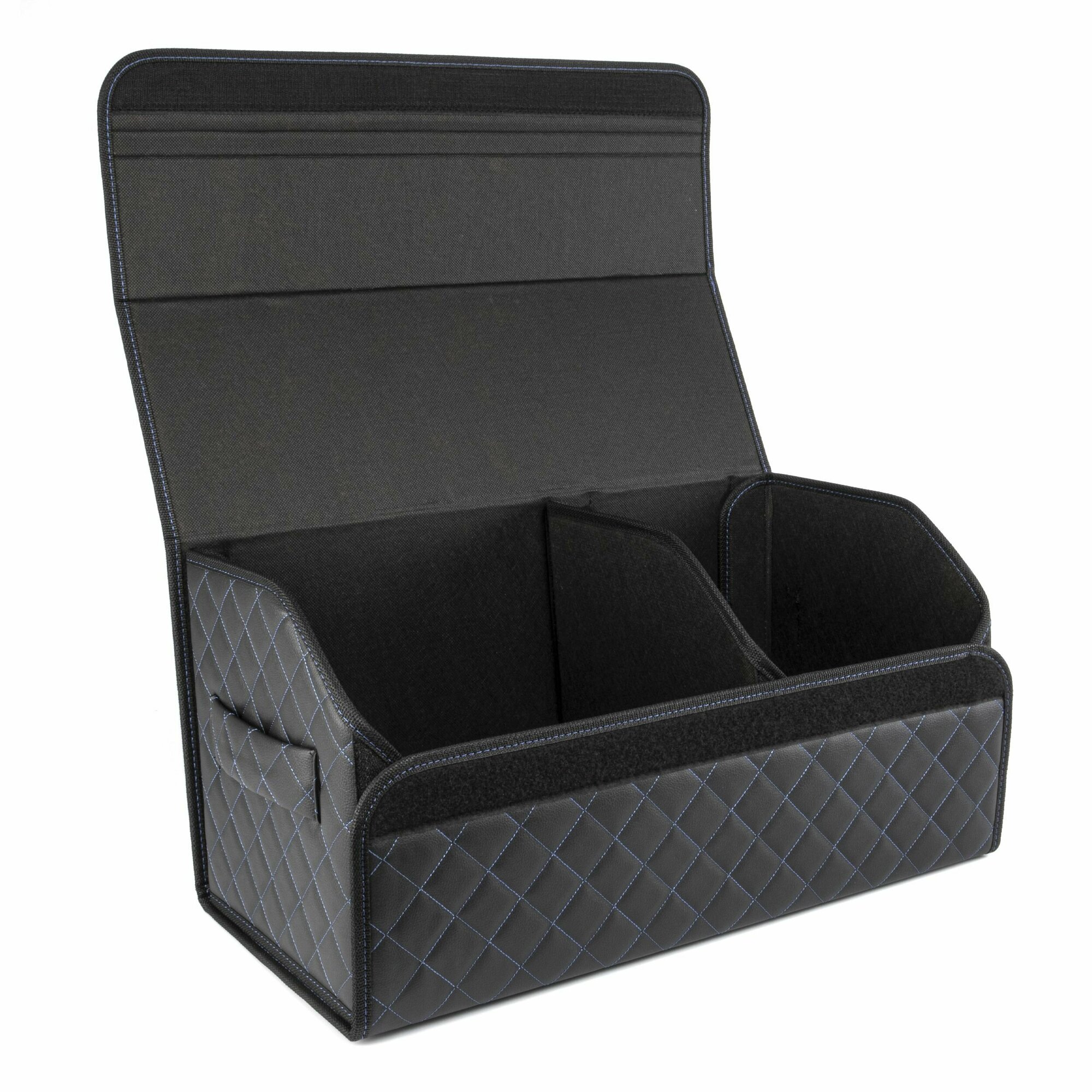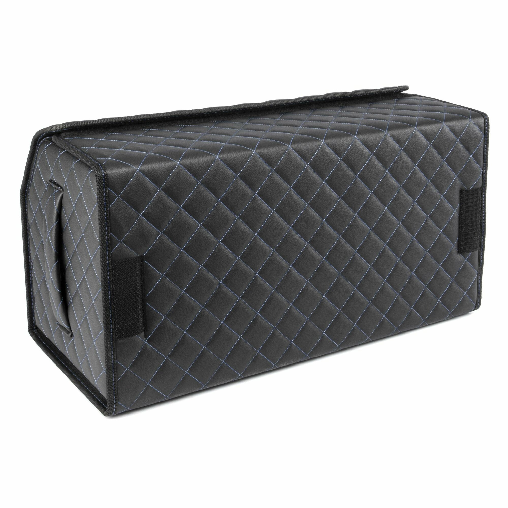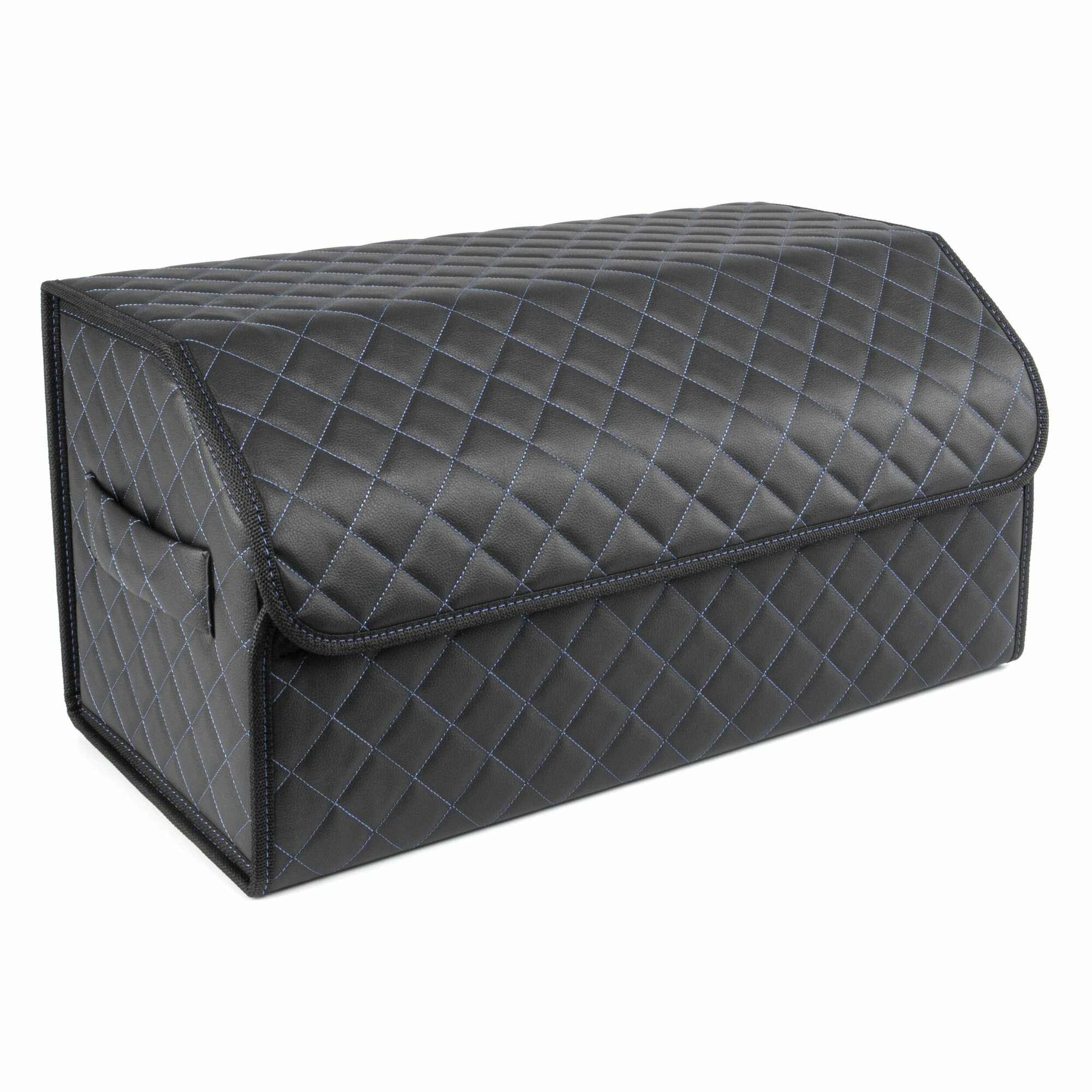 Саквояж в багажник автомобильный эко кожа черная синий ромб, объем 45 л