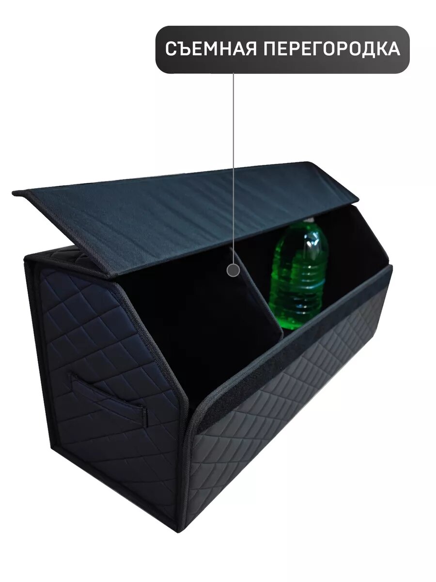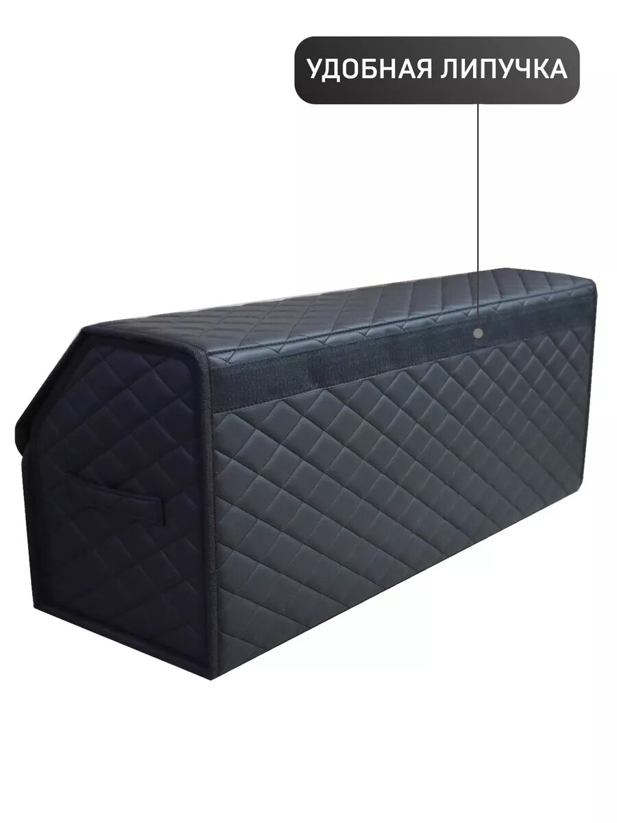 Саквояж в багажник автомобильный эко кожа черная синий ромб, объем 45 л