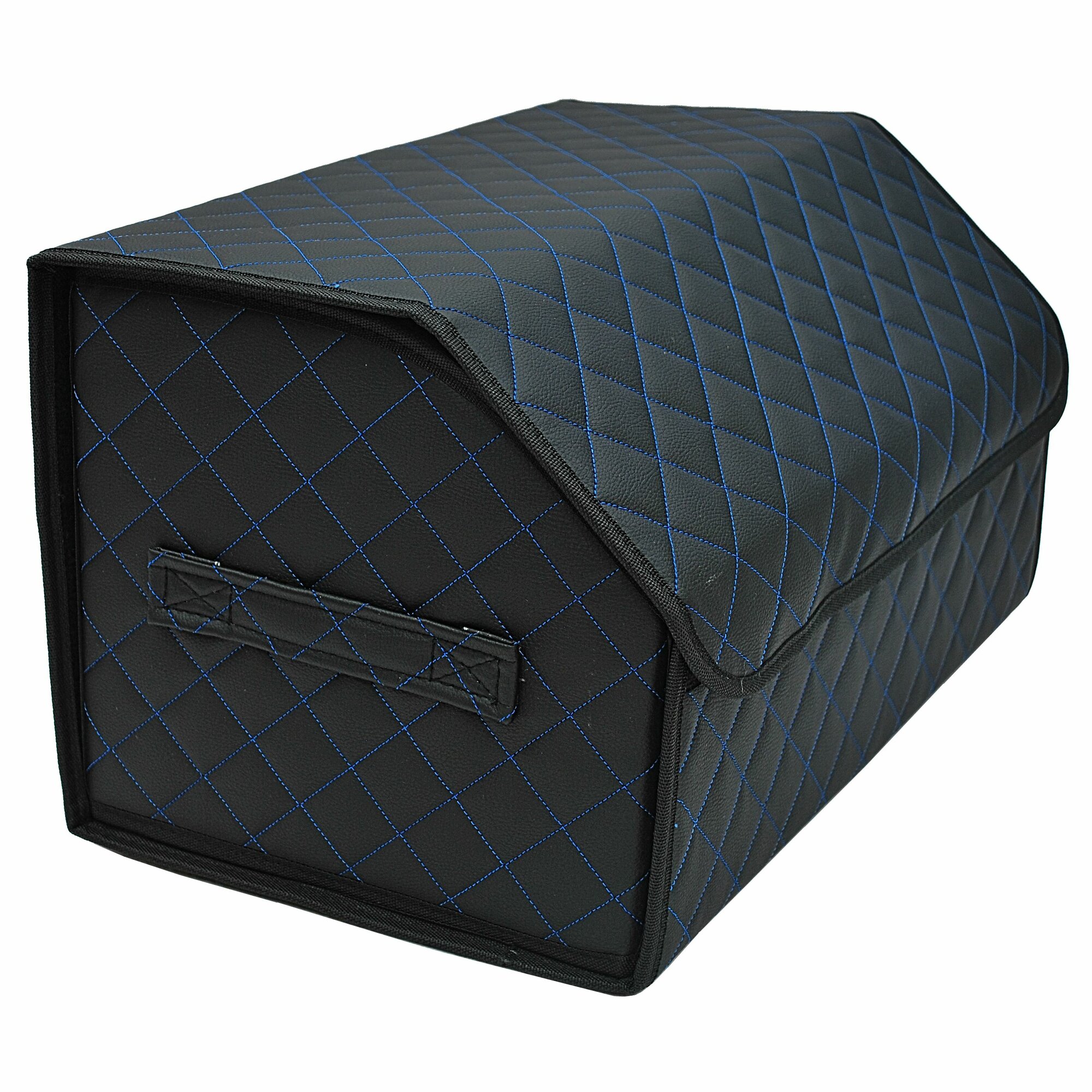 Саквояж в багажник автомобильный эко кожа черная синий ромб, объем 45 л информация:
