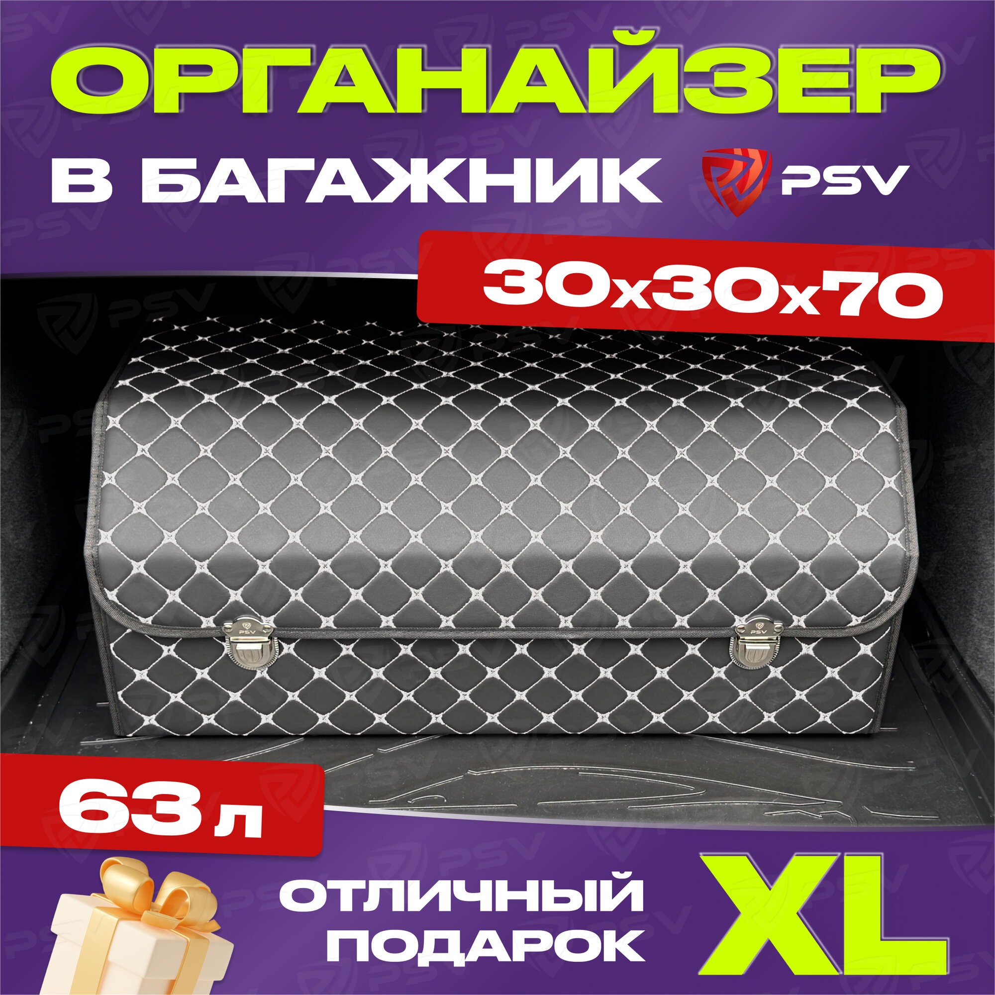 Сумка-органайзер в машину 3D PSV черная экокожа, XL - 30х30х70см 5 400 ₽
